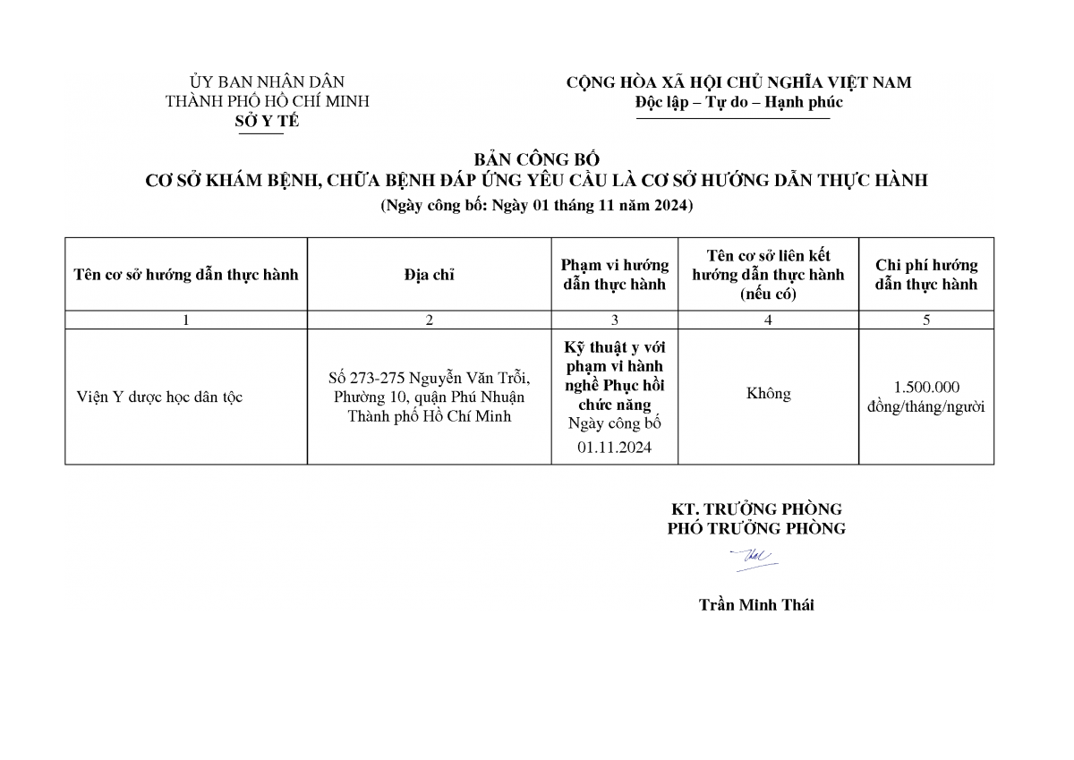 Bản Công bố cơ sở hướng dẫn thực hành Kỹ thuật y với phạm vi hành nghề Phục hồi chức năng