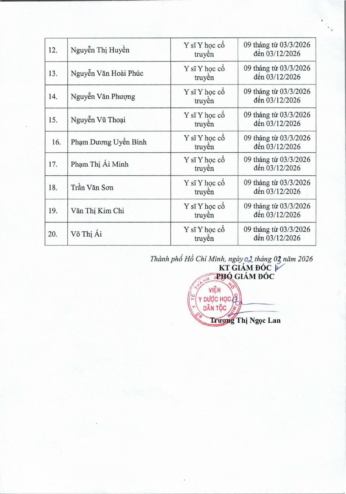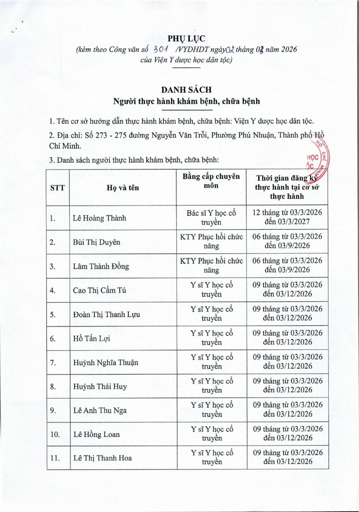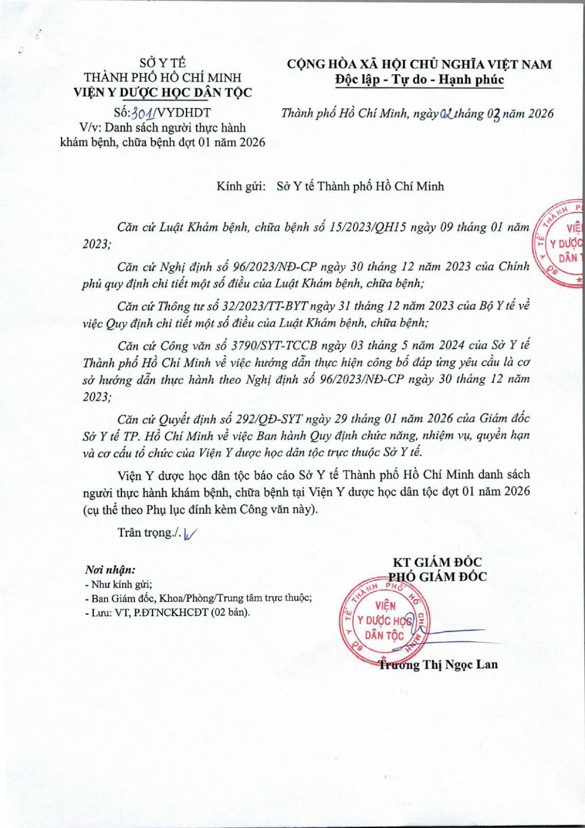 ĐÀO TẠO - CHỈ ĐẠO TUYẾNThông báo Thông báo danh sách người thực hành khám bệnh, chữa bệnh đợt 01 năm 2026 Công văn 301 về việc danh sách người thực hành khám bệnh, chữa bệnh đợt 01 năm 2026 03/03/2026 3 Share on Facebook Tweet on Twitter tweet