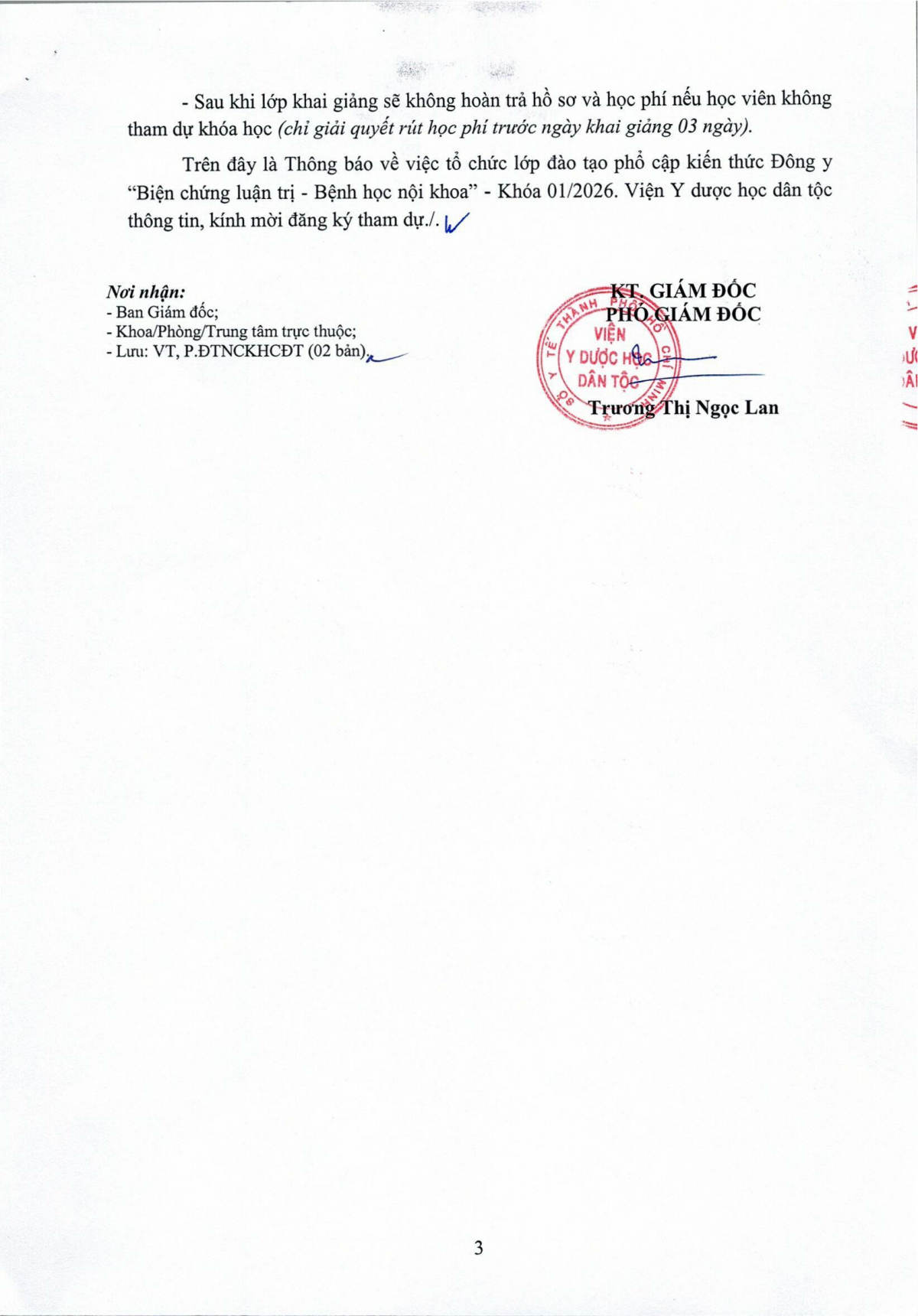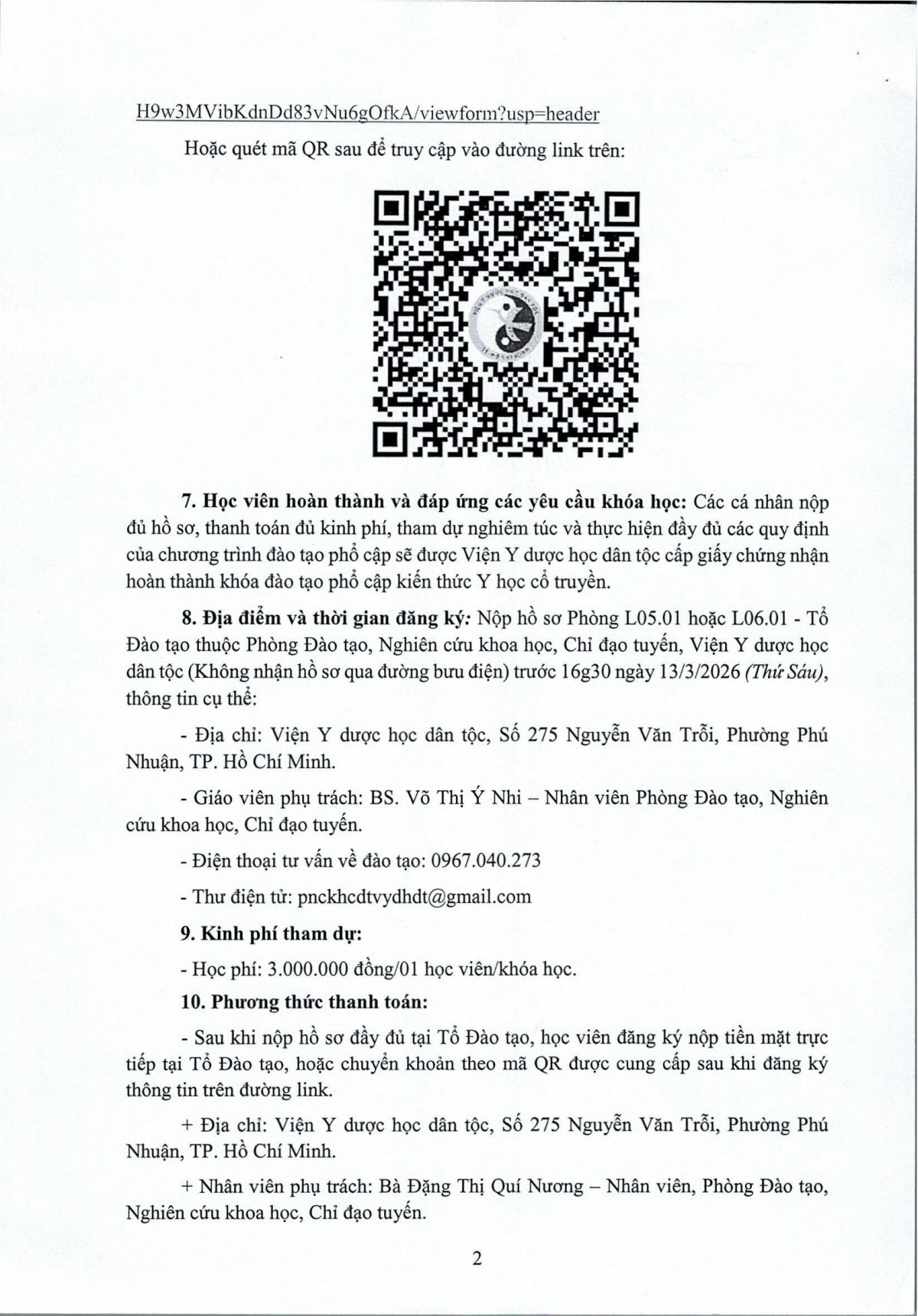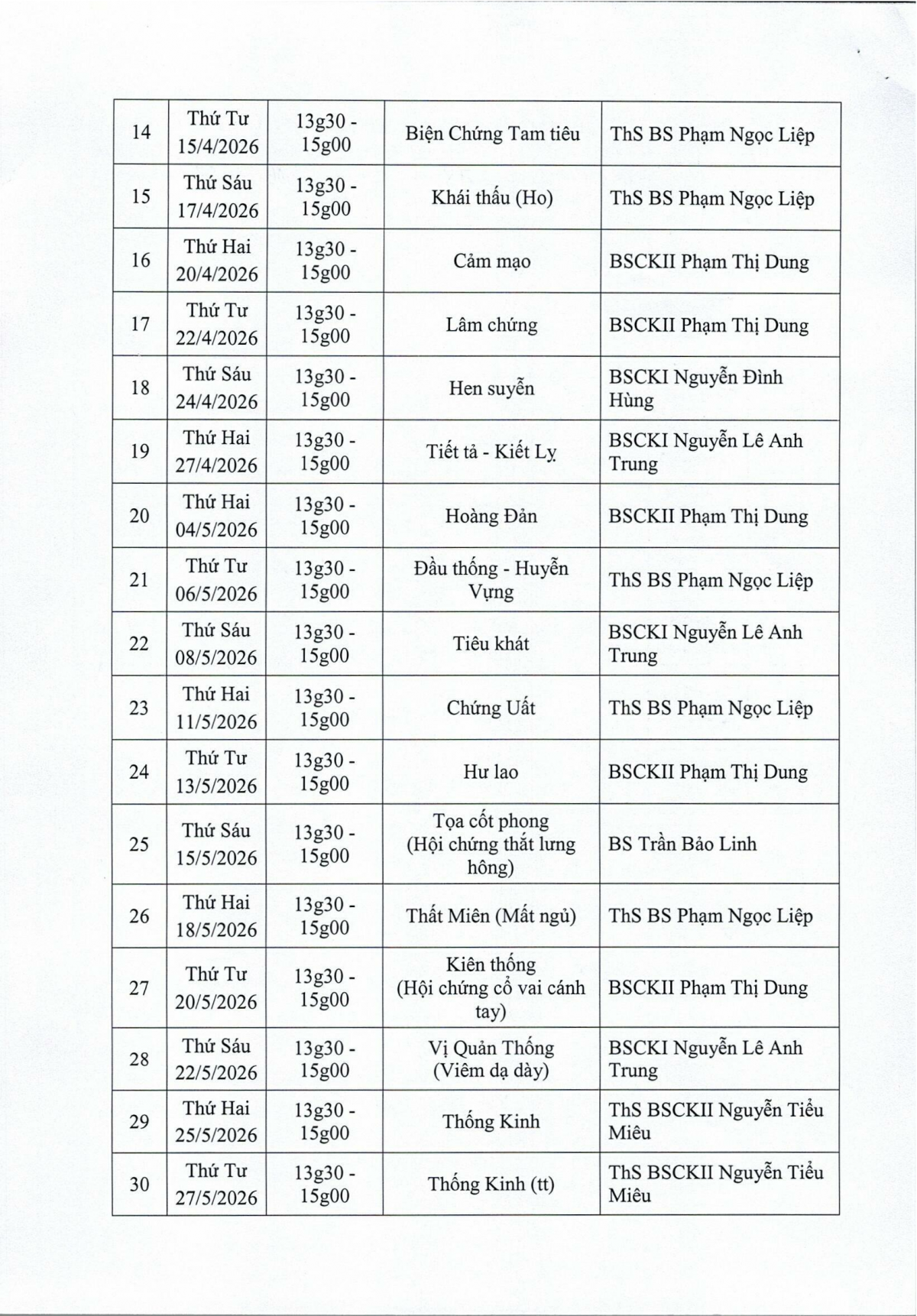 Thông báo tổ chức lớp đào tạo phổ cập kiến thức Đông y Biện chứng luận trị- Bệnh học nội khoa khóa 01 năm 2026