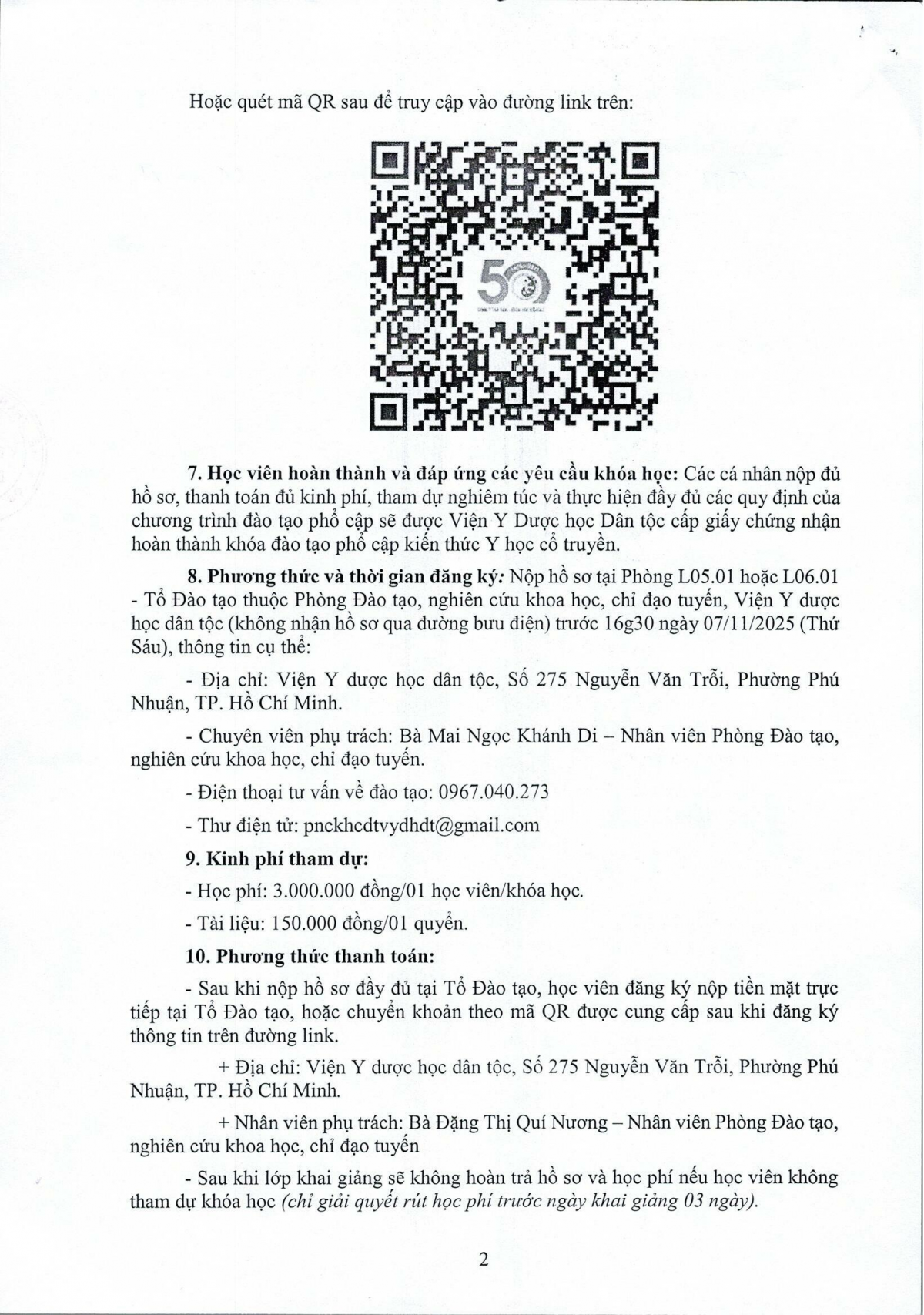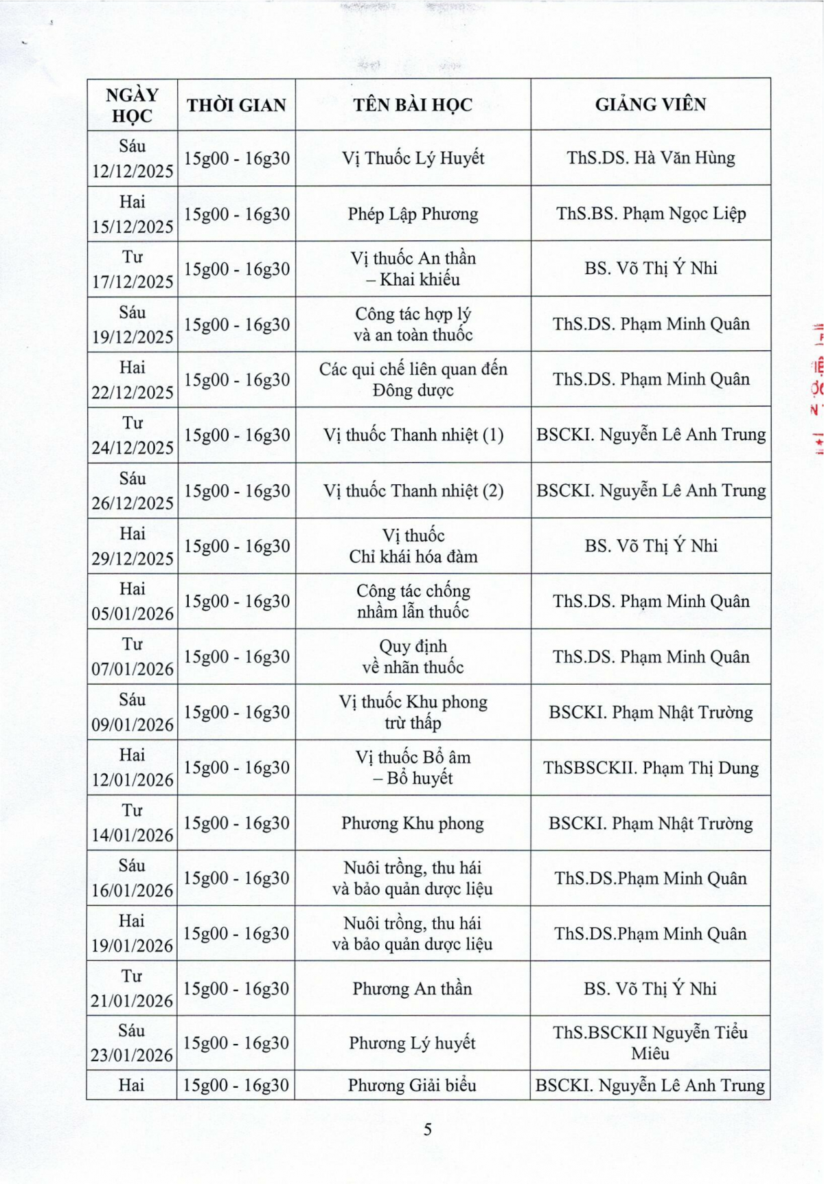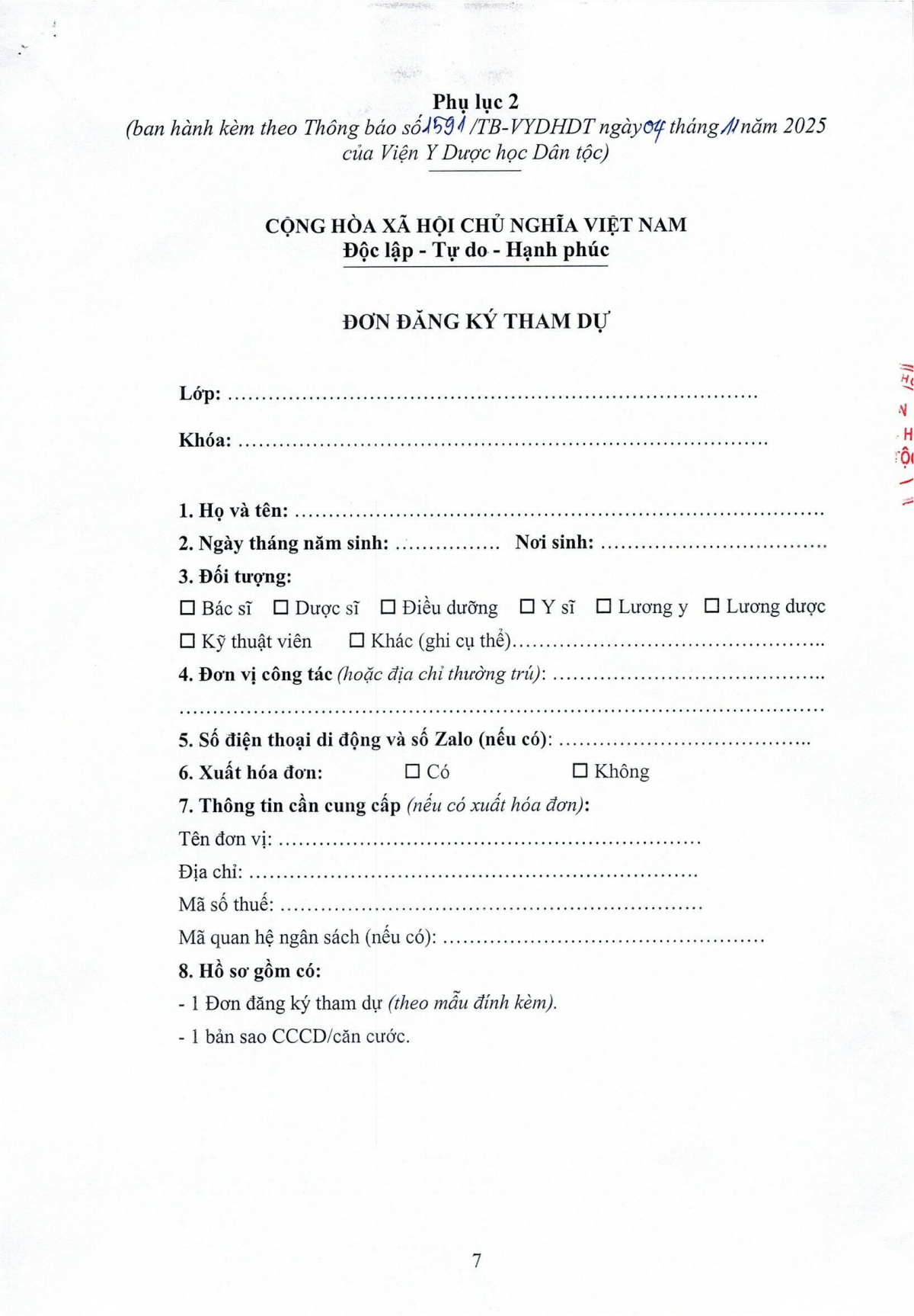 Thông báo 1591 về việc tổ chức lớp đào tạo phổ cập kiến thức Đông y Đông dược cơ bản khóa 70