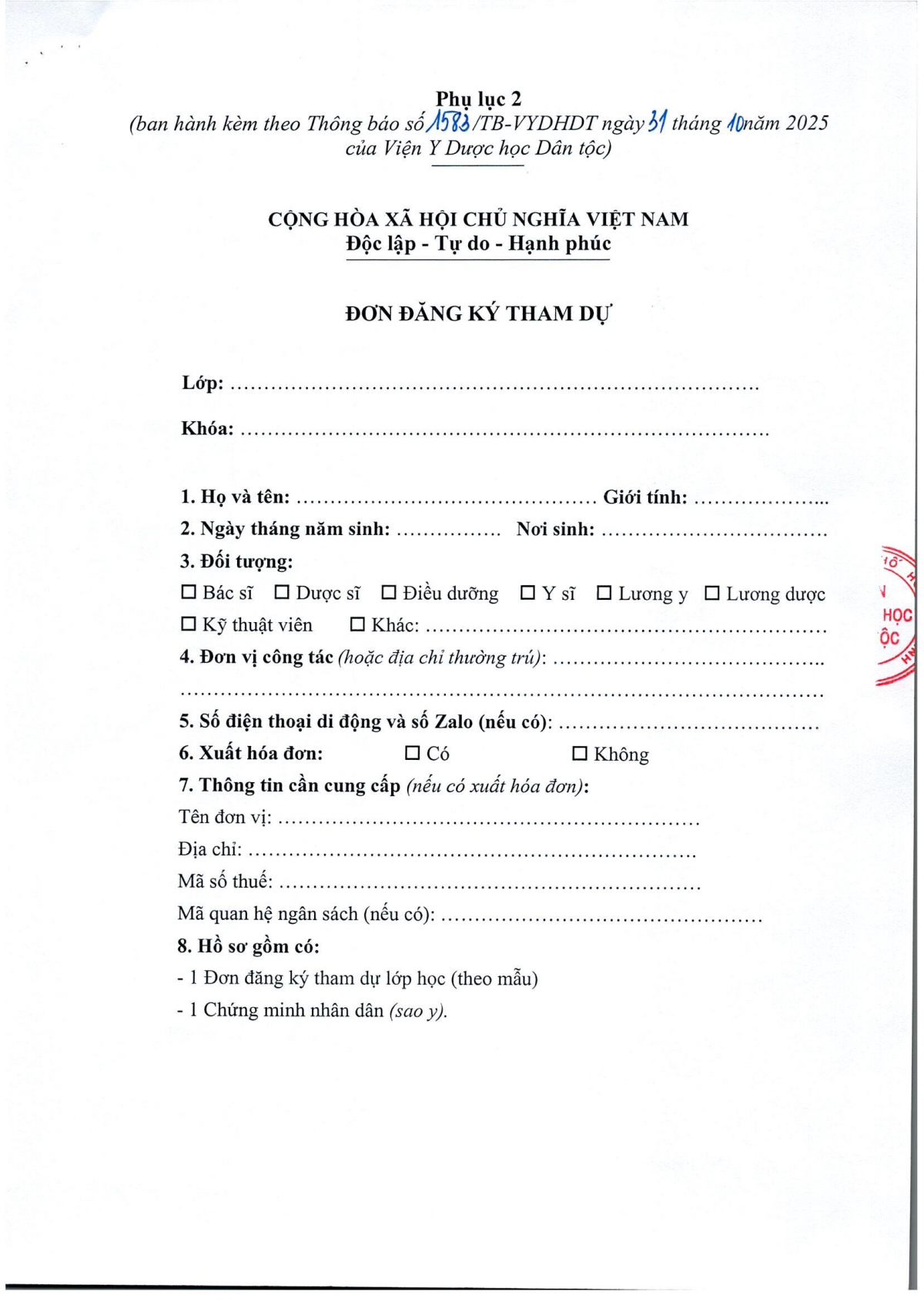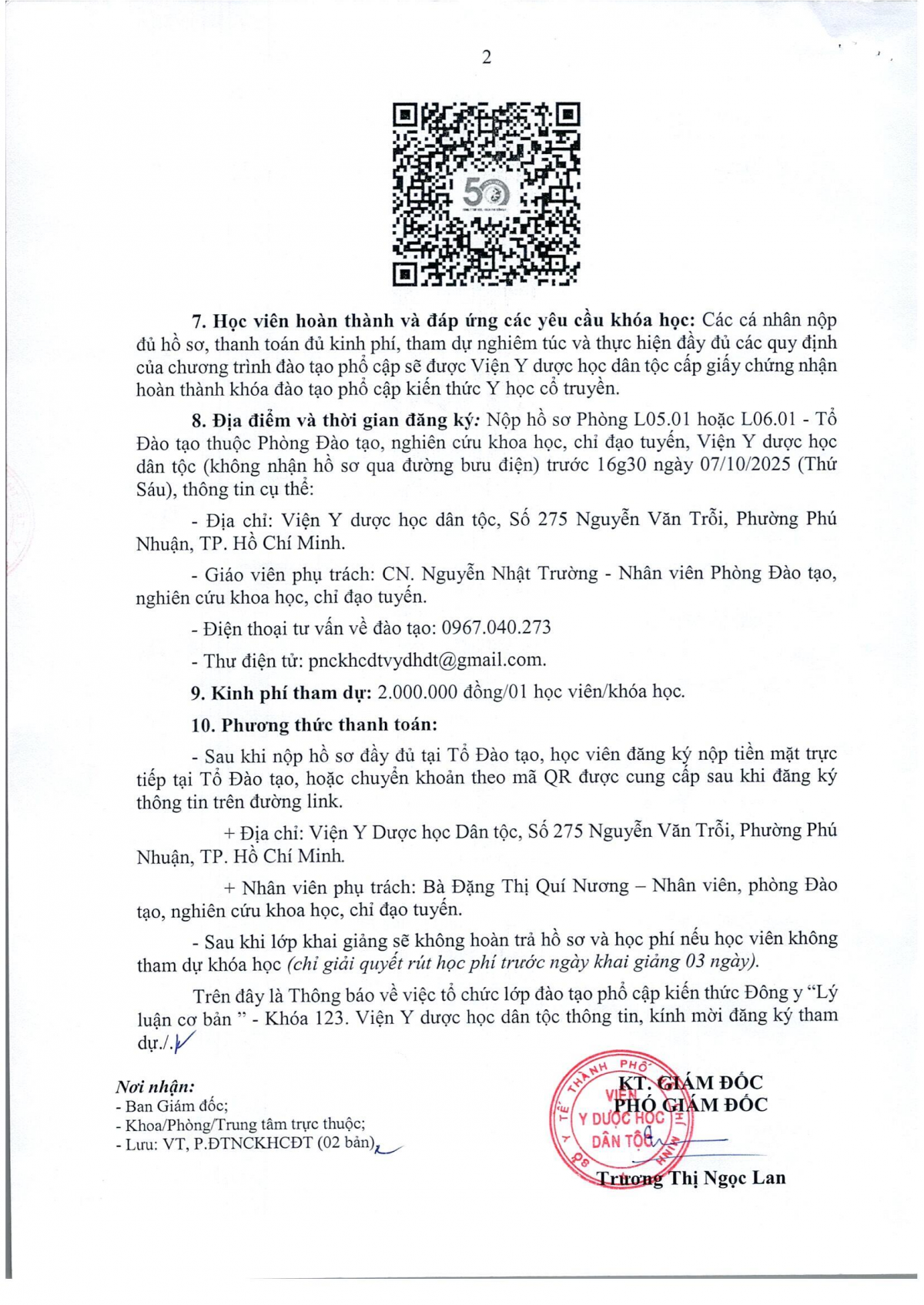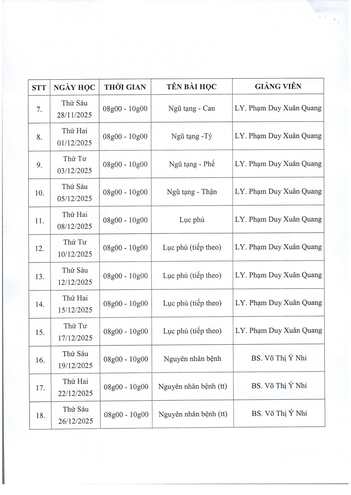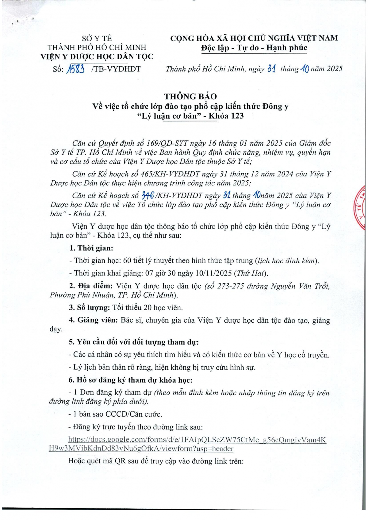 Thông báo 1583 về việc Tổ chức lớp đào tạo phổ cập kiến thức Đông y Lý luận cơ bản - Khóa 123