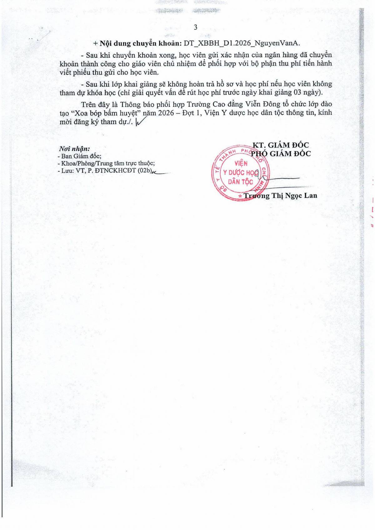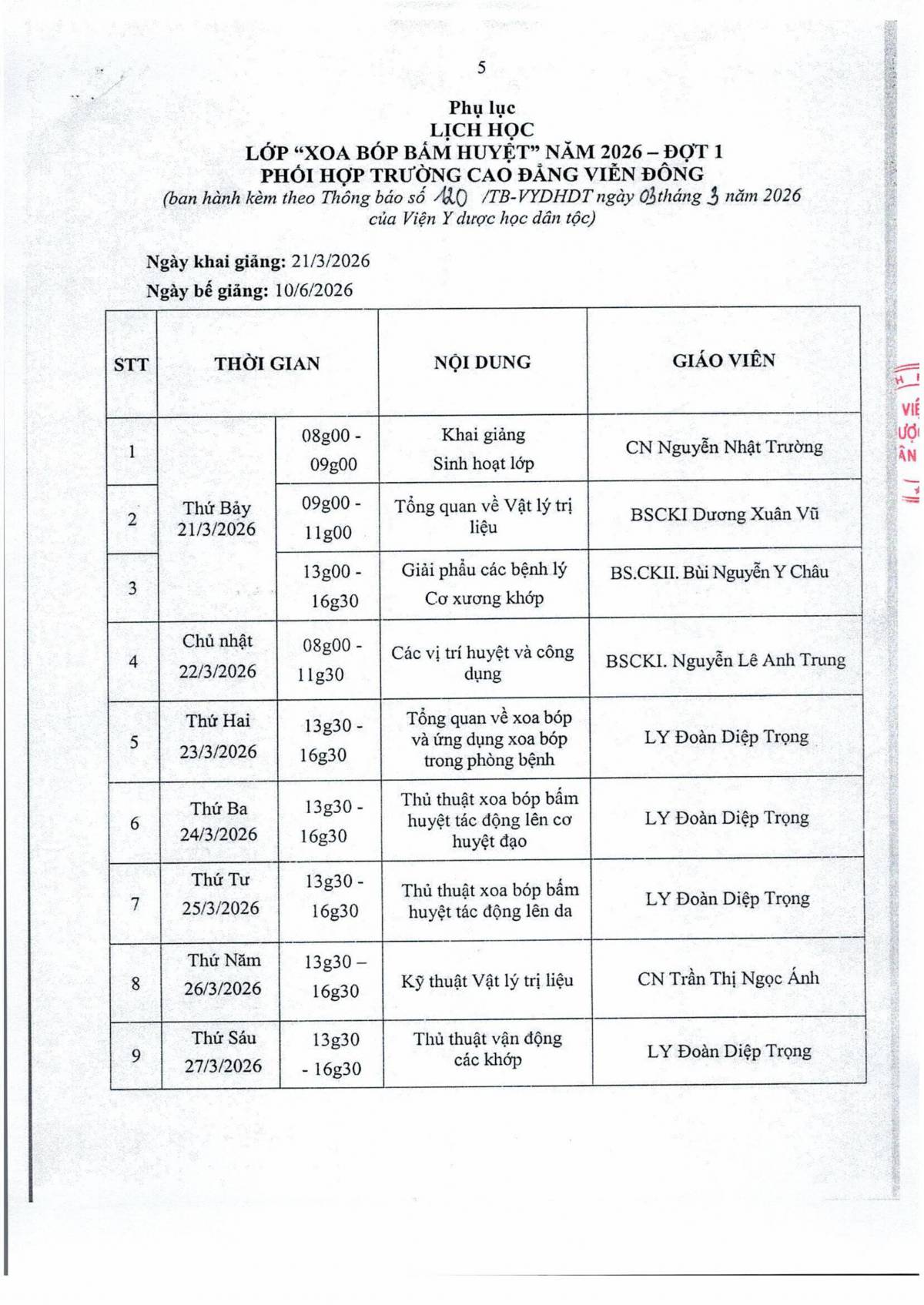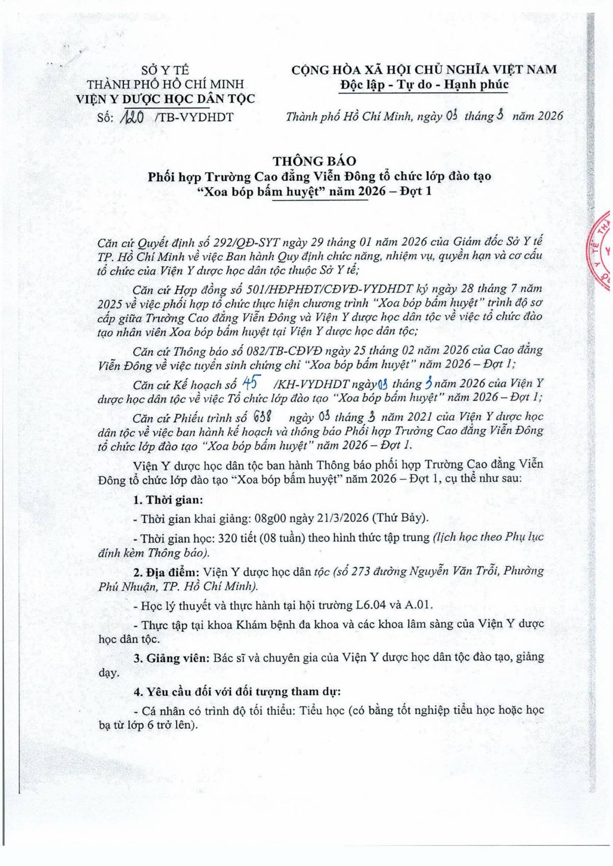 Thông báo 120 về Phối hợp Trường Cao đẳng Viễn Đông tổ chức lớp đào tạo Xoa bóp bấm huyệt năm 2026 - Đợt 1