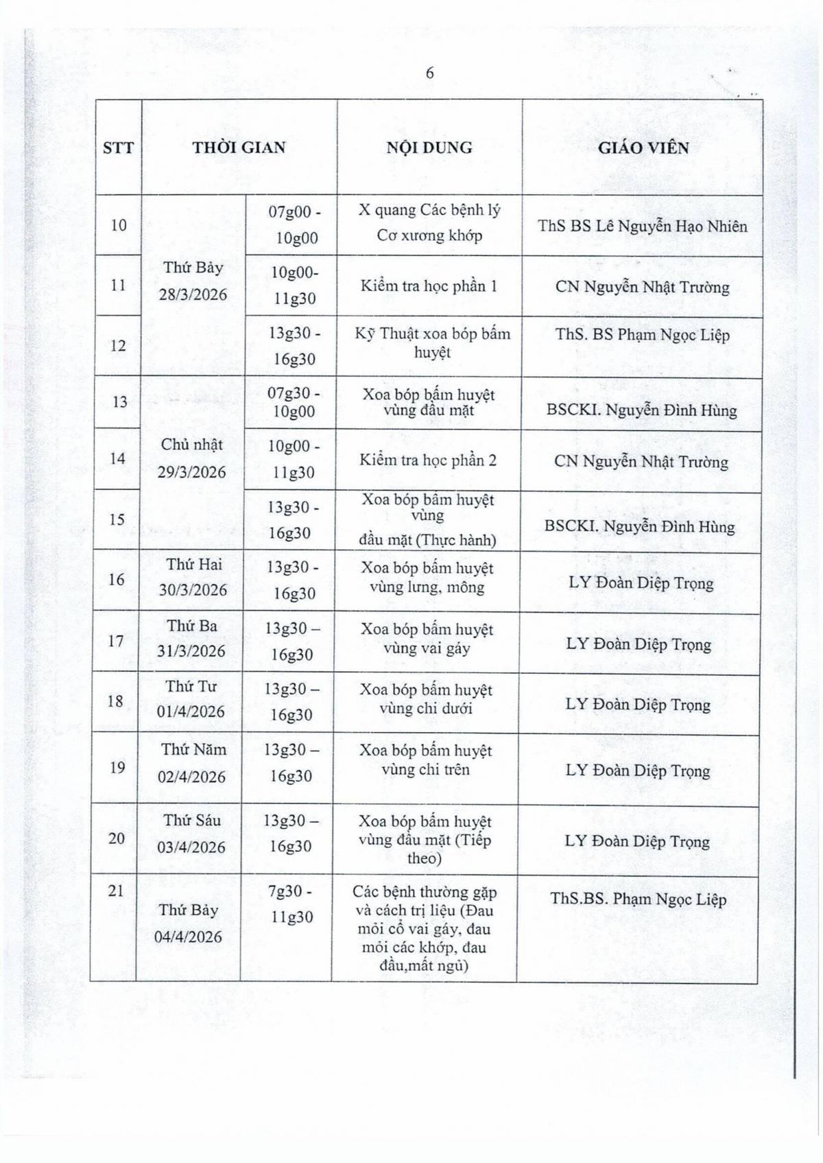 Thông báo tổ chức lớp đào tạo Xoa bóp bấm huyệt năm 2026 – Đợt 1