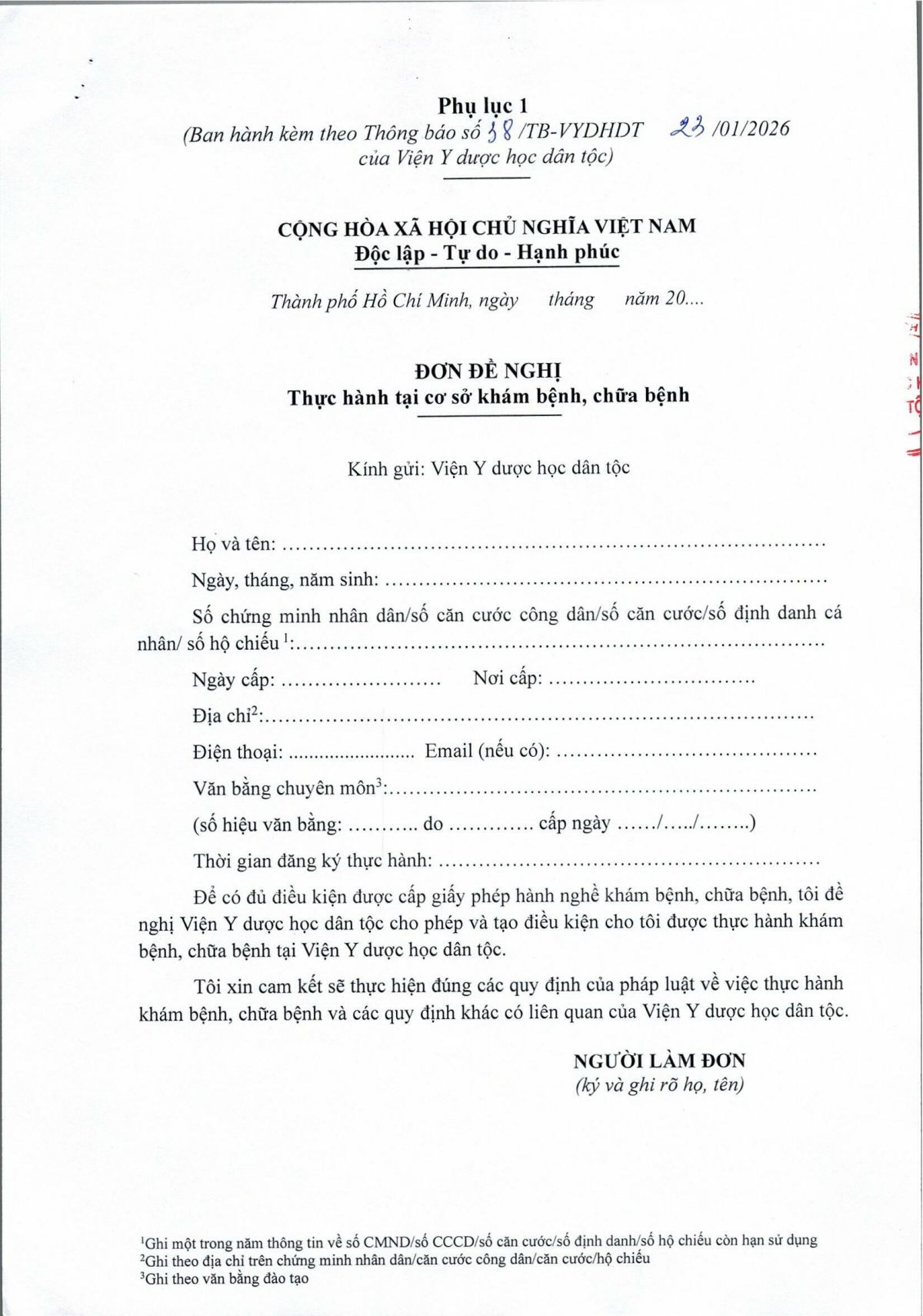 Tải Mẫu Đơn đề nghị thực hành tại đây: (Phụ lục 1).