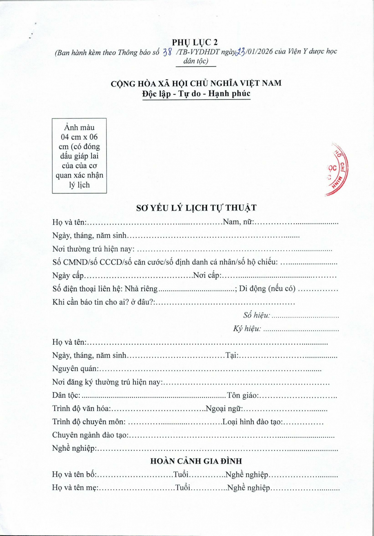 Tải Mẫu Đơn Sơ yếu lý lịch tại đây: (Phụ lục 2).