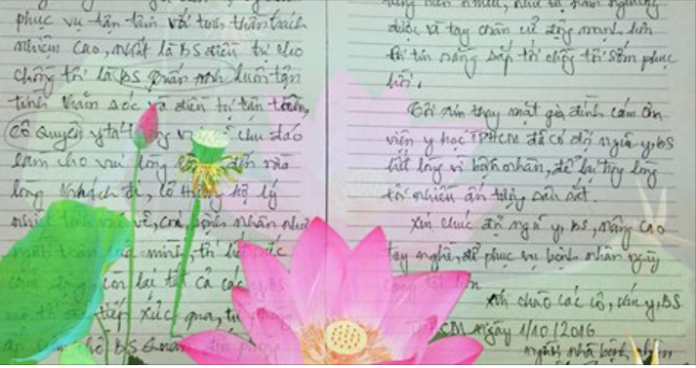 Mới nằm viện điều trị một tuần, mà huyết áp ông Lâm đã ổn định, tay chân cử động được. Người nhà bệnh nhân rất xúc động, họ đã viết thư khen ngợi. Với những lời cảm ơn rất chân thành, đó là động lực rất to lớn, để đội ngũ bác sĩ và điều dưỡng của Viện Y dược học dân tộc tiếp tục phát huy chuyên môn, điều trị khỏi bệnh cho bệnh nhân, người bệnh sẽ rất an tâm khi đến Viện Y dược học dân tộc nằm viện và chữa bệnh.