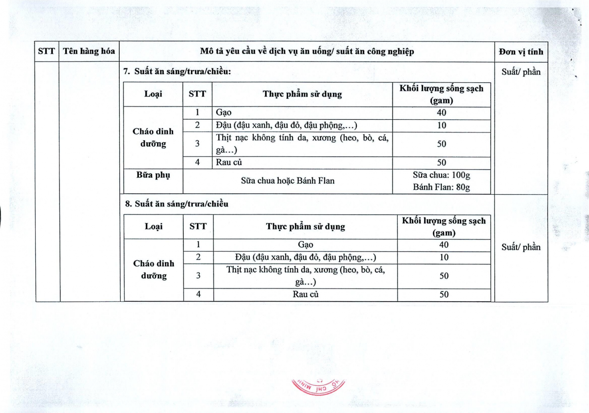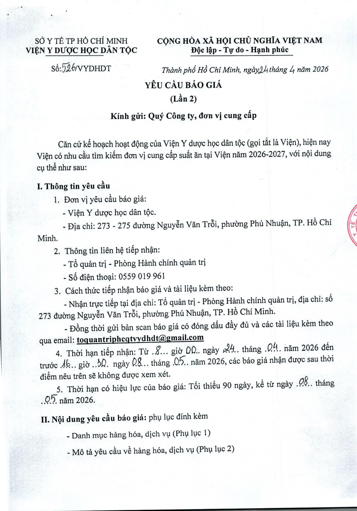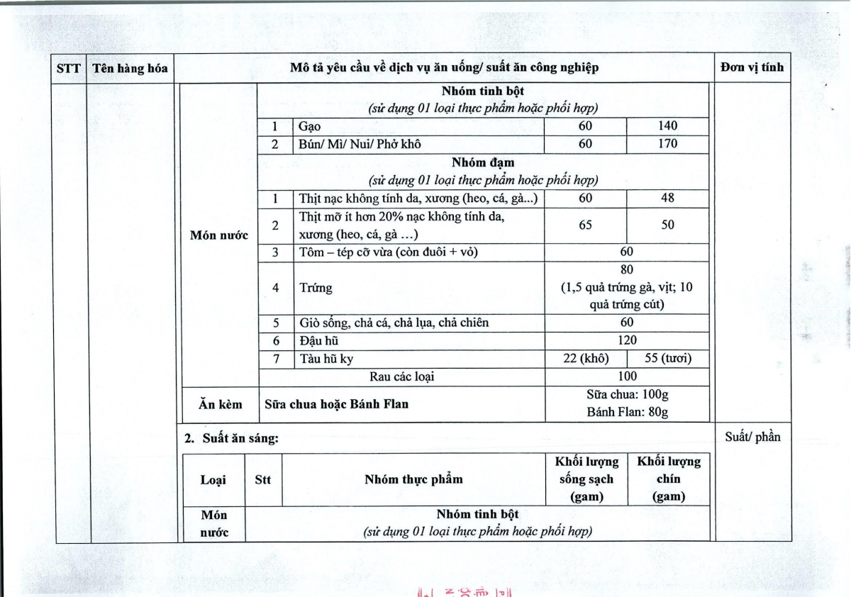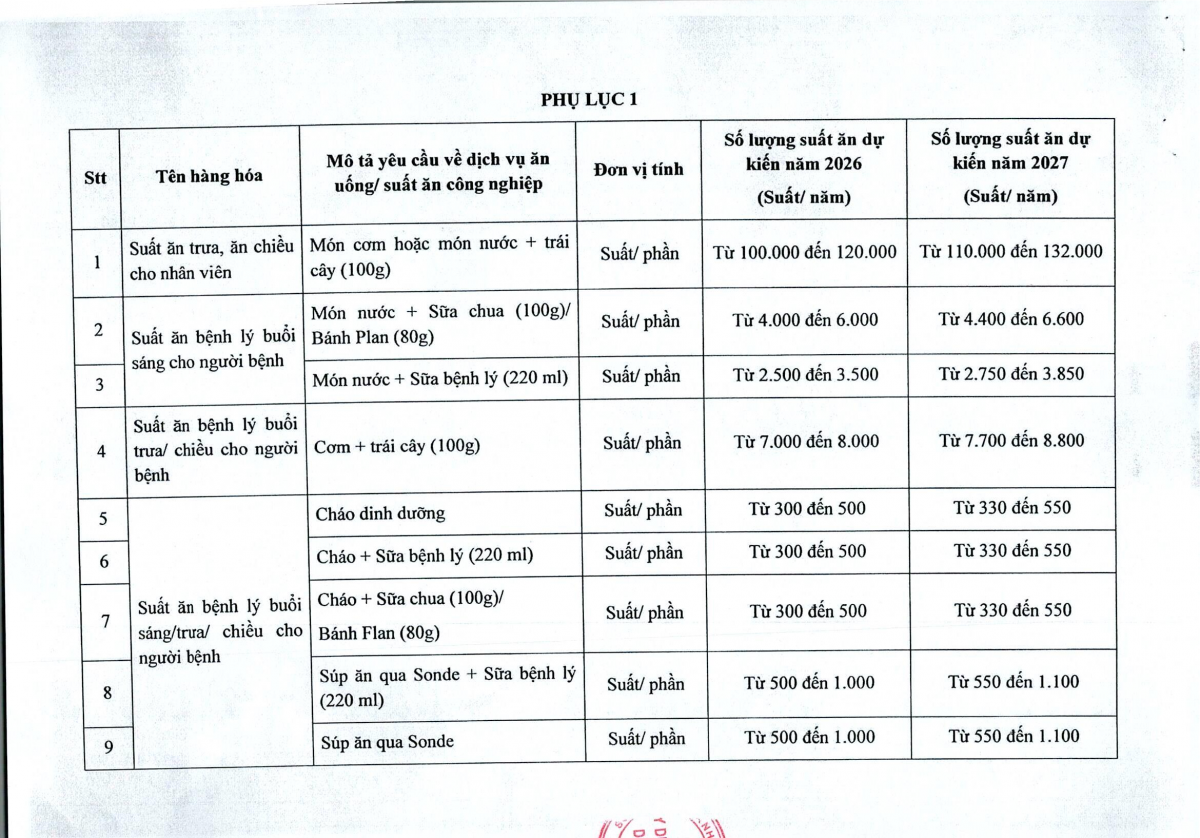 MUA SẮM - ĐẤU THẦU Thông báo chào giá dịch vụ cung cấp suất ăn Công văn 526 yêu cầu chào giá dịch vụ cung cấp suất ăn (lần 2) 24/04/2026 24 Share on Facebook Tweet on Twitter tweet