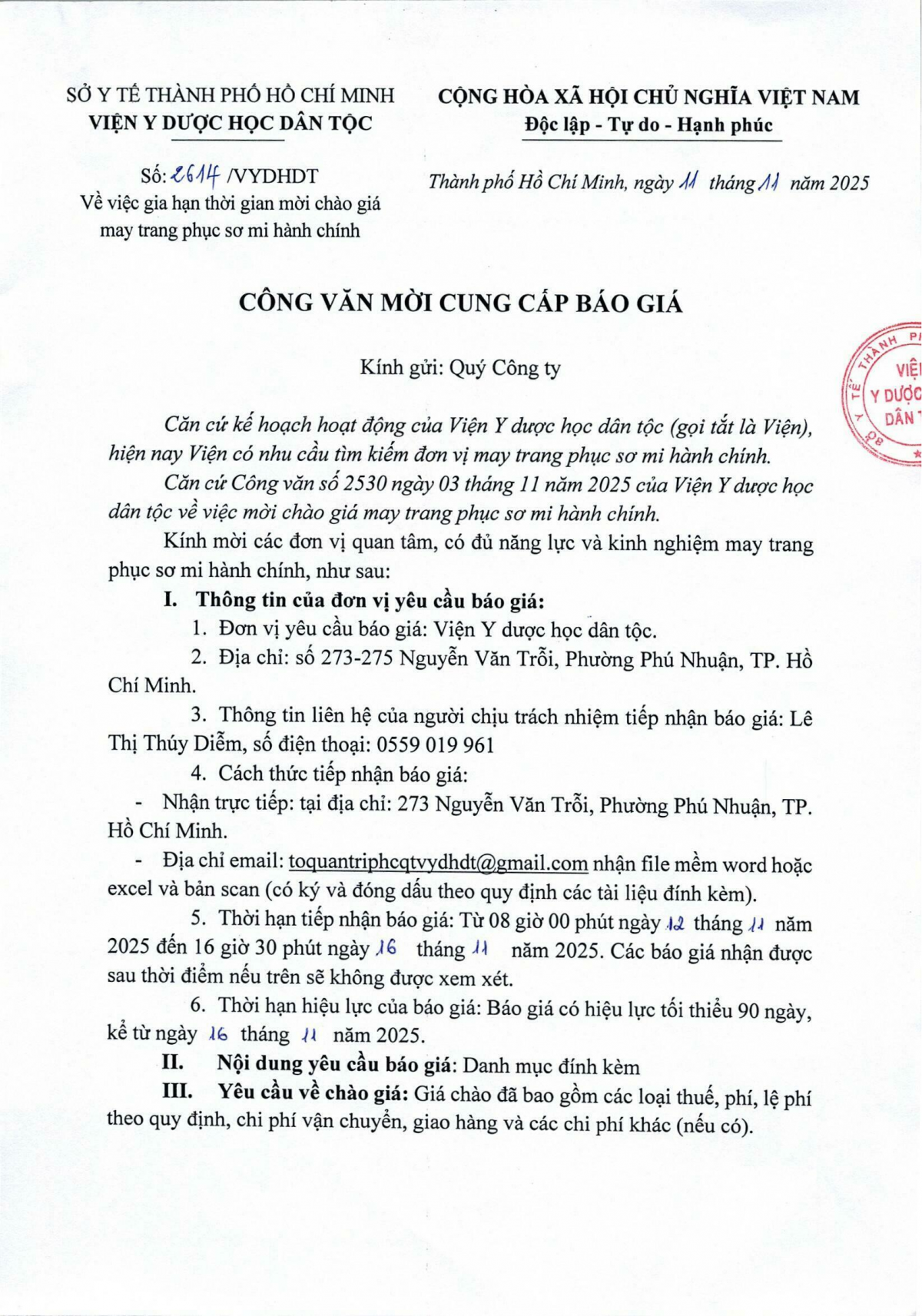 MUA SẮM - ĐẤU THẦU Thông báo gia hạn thời gian mời chào giá may trang phục sơ mi hành chính Công văn 2614 về việc gia hạn thời gian mời chào giá may trang phục sơ mi hành chính 12/11/2025 9 Share on Facebook Tweet on Twitter tweet