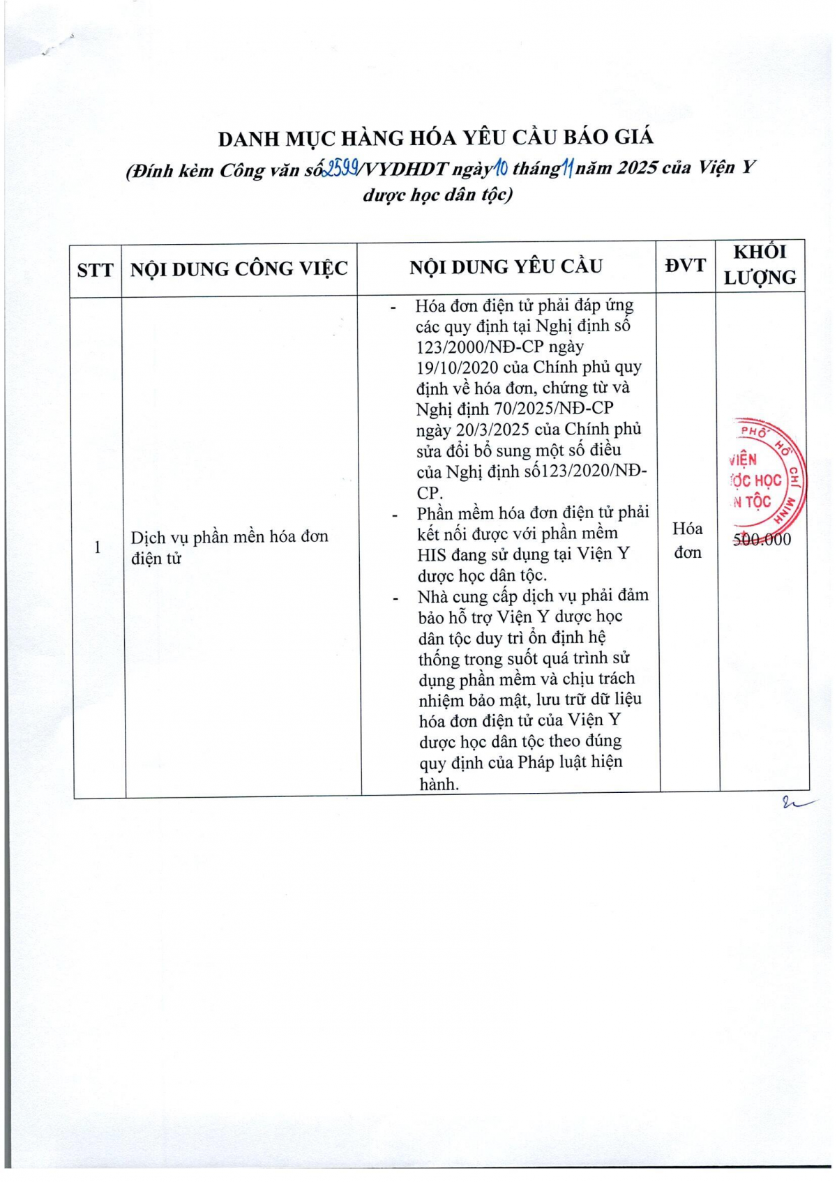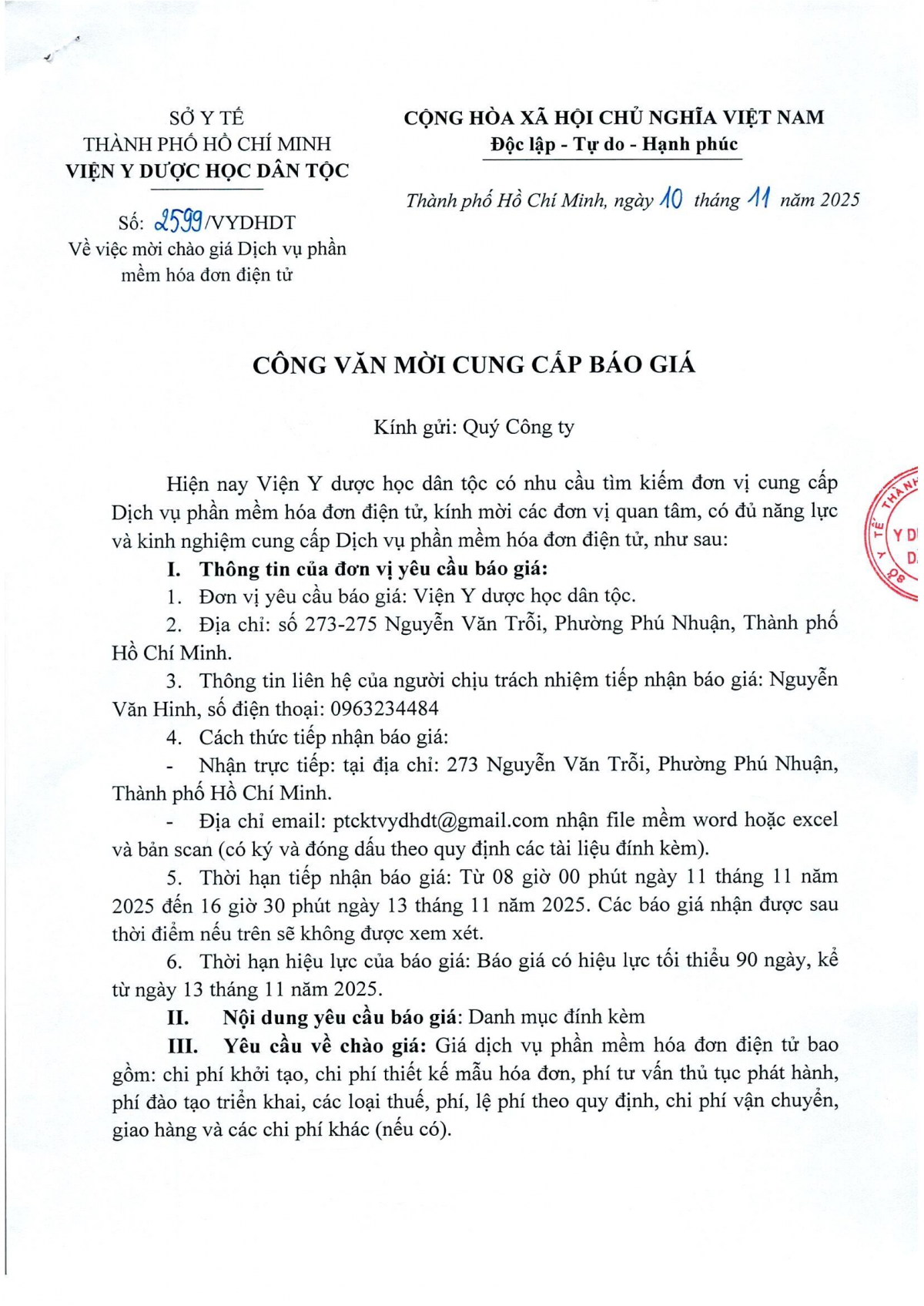 MUA SẮM - ĐẤU THẦU Thông báo mời chào giá Dịch vụ phần mềm hóa đơn điện tử Công văn 2599 về việc mời chào giá Dịch vụ phần mềm hóa đơn điện tử 10/11/2025 7 Share on Facebook Tweet on Twitter tweet