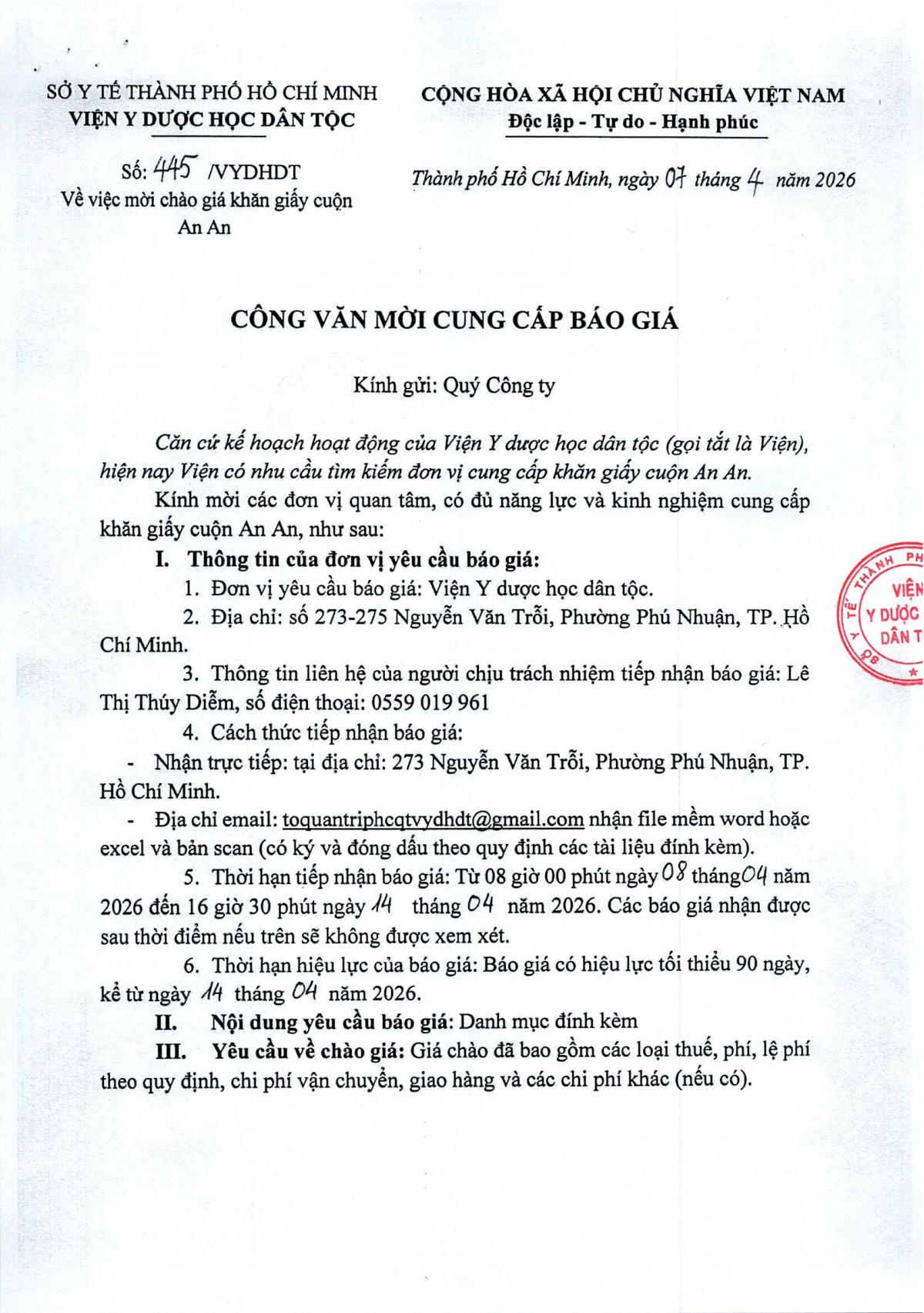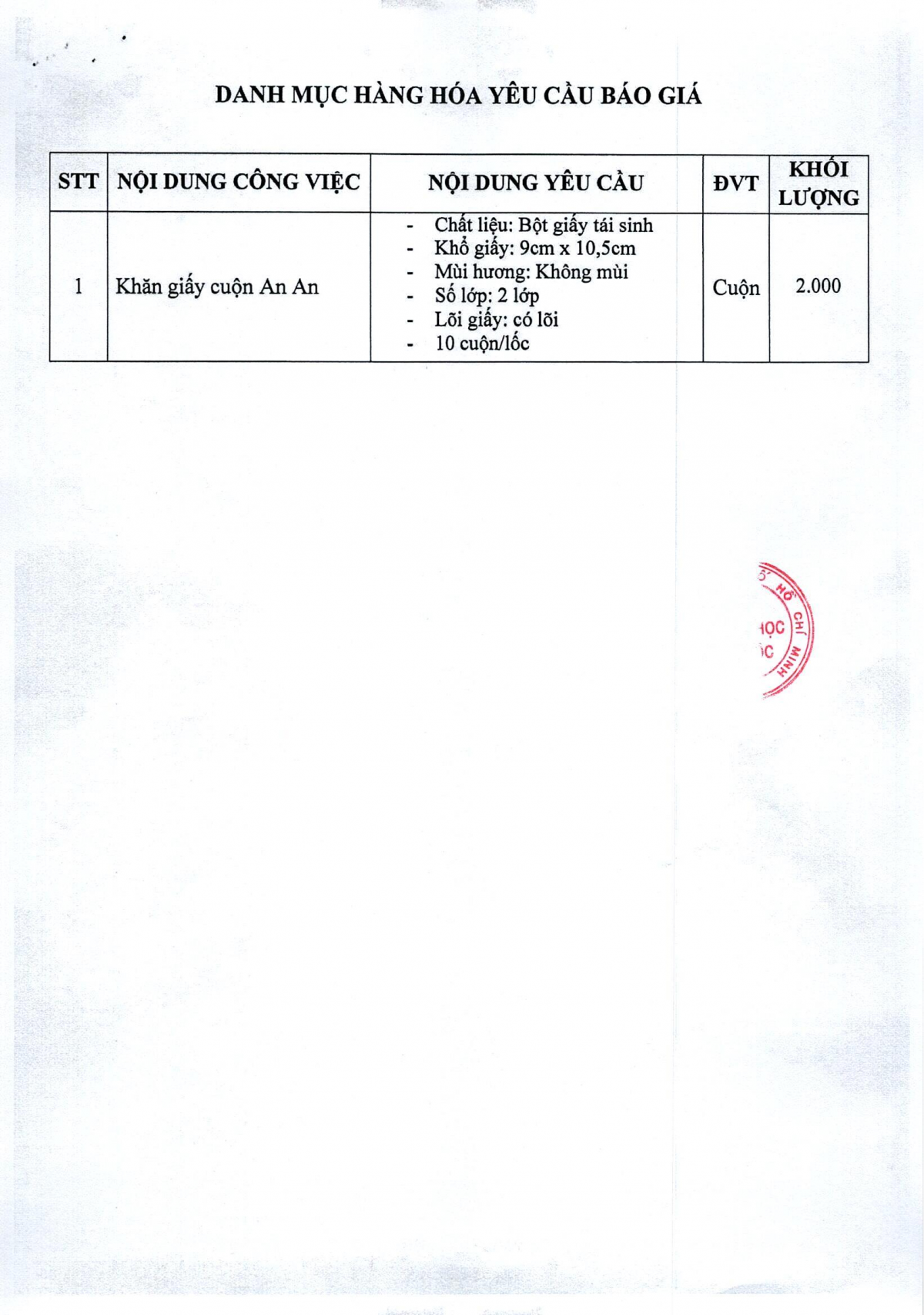 MUA SẮM - ĐẤU THẦU Thông báo mời chào giá khăn giấy cuộn An An 07/04/2026 11 Share on Facebook Tweet on Twitter tweet