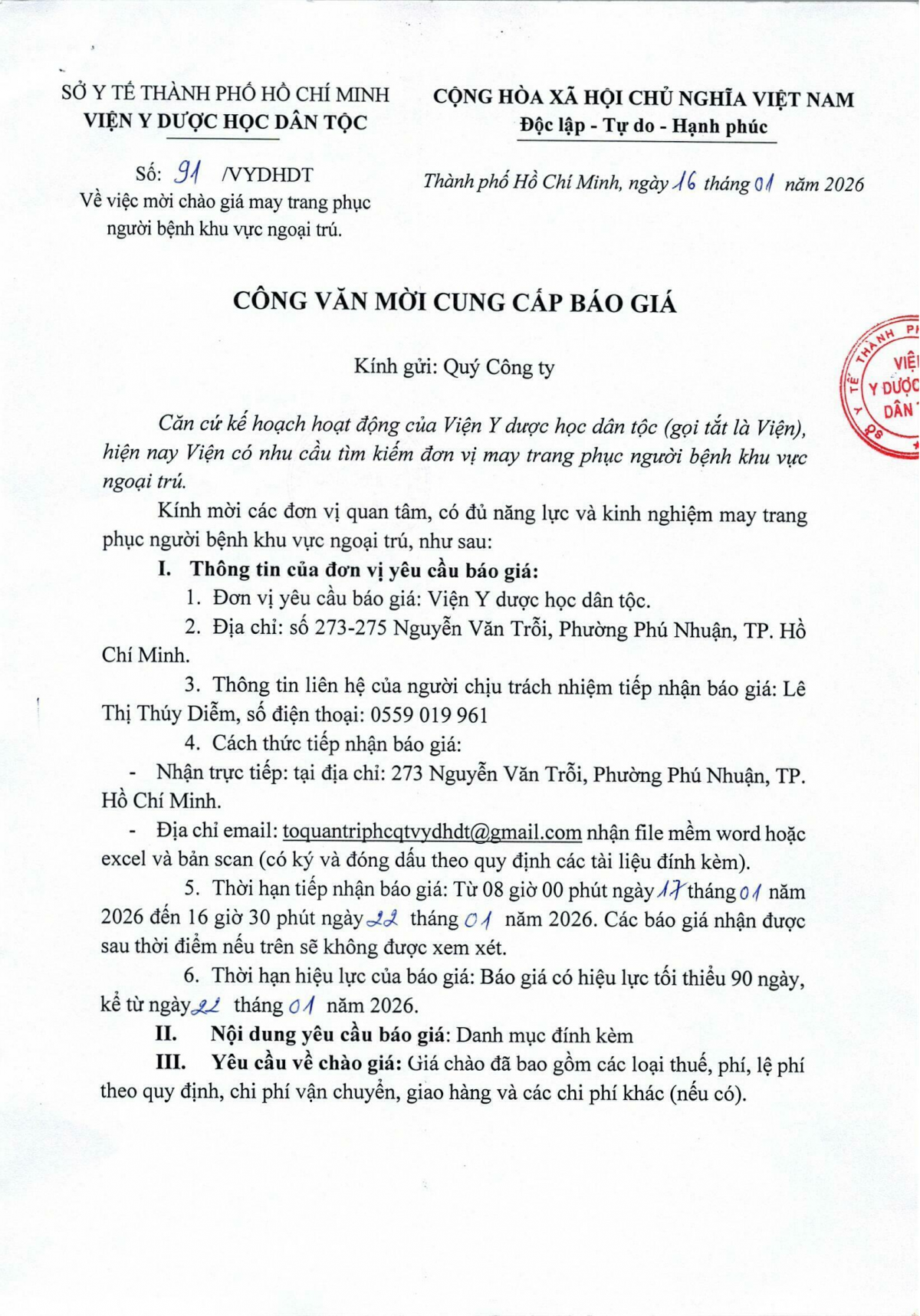 MUA SẮM - ĐẤU THẦU Thông báo mời chào giá may trang phục người bệnh khu vực ngoại trú Công văn 91 về việc mời chào giá may trang phục người bệnh khu vực ngoại trú 16/01/2026 3 Share on Facebook Tweet on Twitter tweet