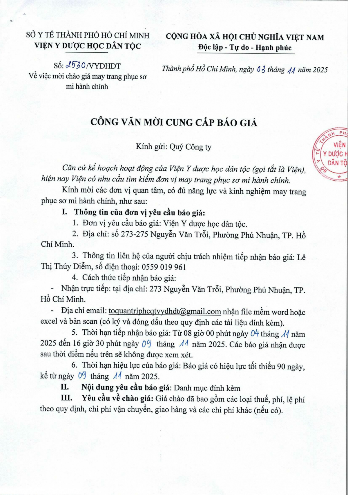 MUA SẮM - ĐẤU THẦU Thông báo mời chào giá may trang phục sơ mi hành chính Công văn 2530 về việc mời chào giá may trang phục sơ mi hành chính 04/11/2025 56 Share on Facebook Tweet on Twitter tweet