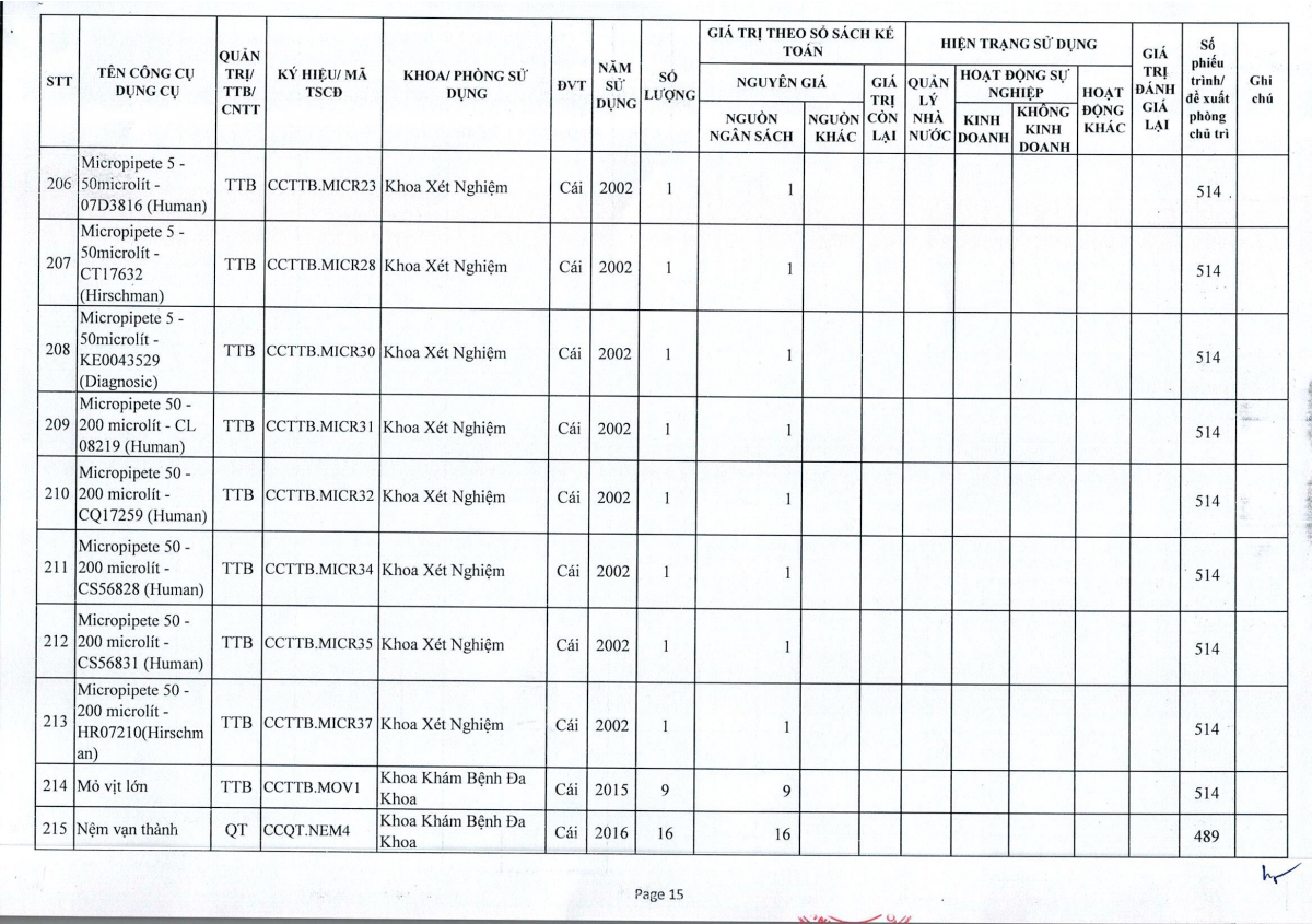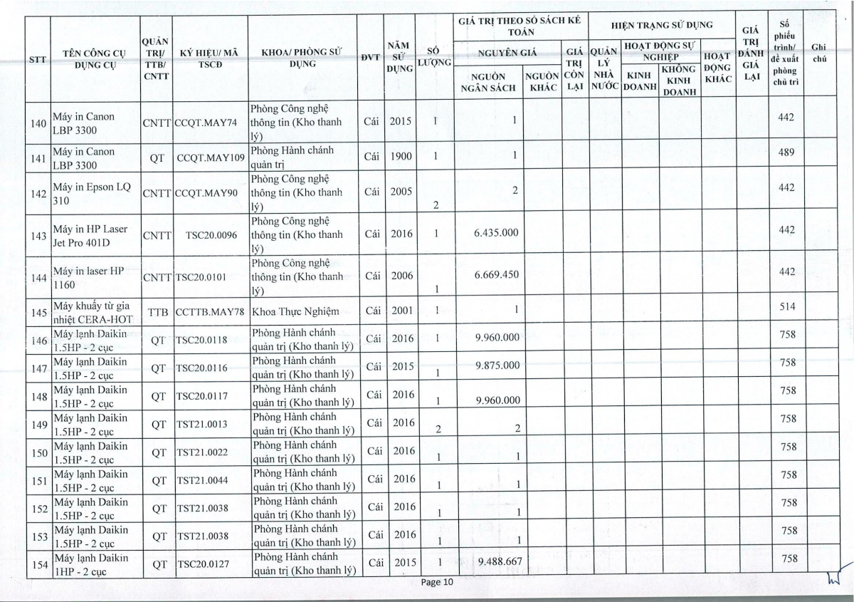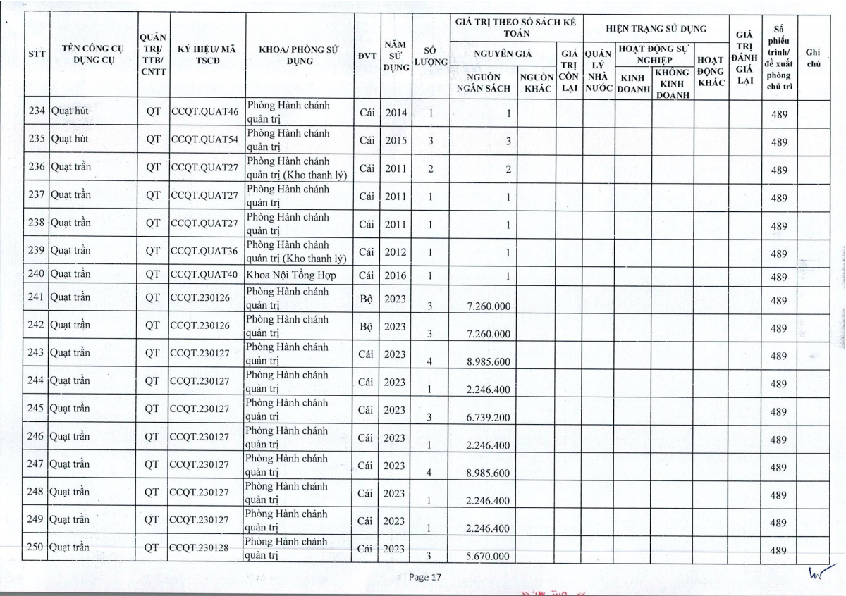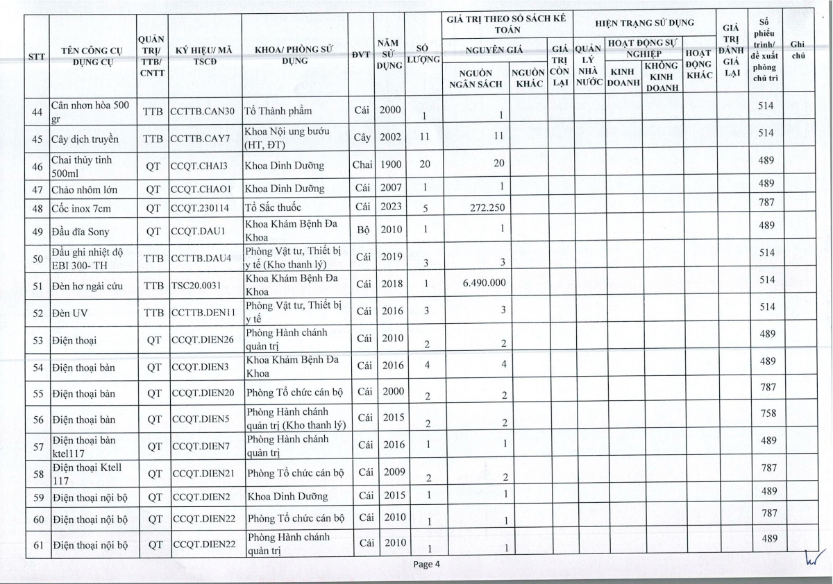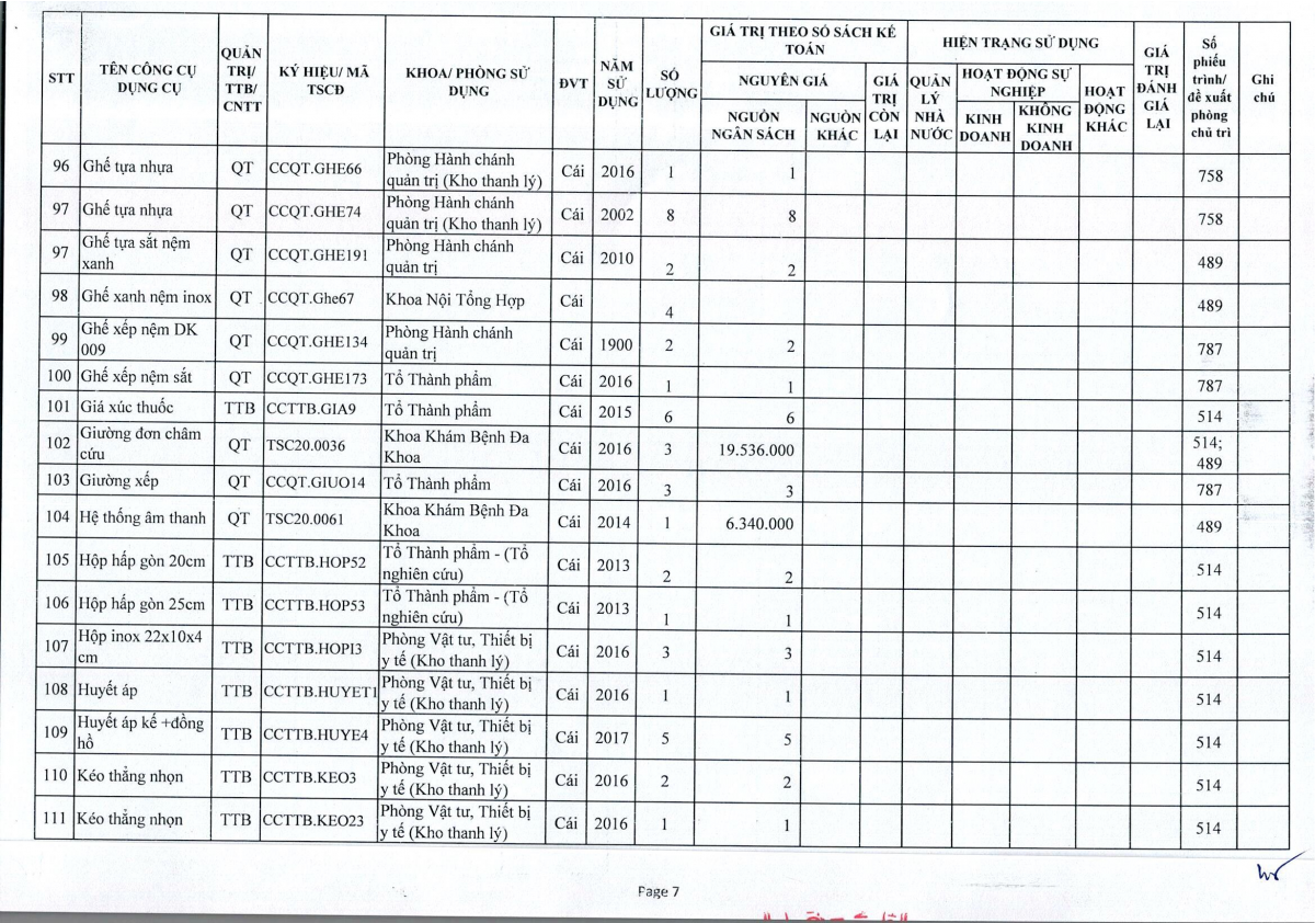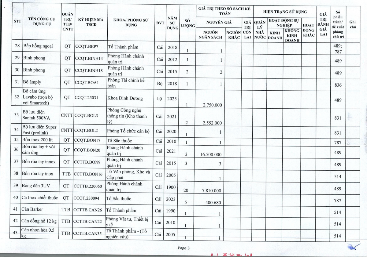 Thông báo số 243 về việc bán thanh lý công cụ dụng cụ, đồ vải, hóa chất hư hỏng năm 2026