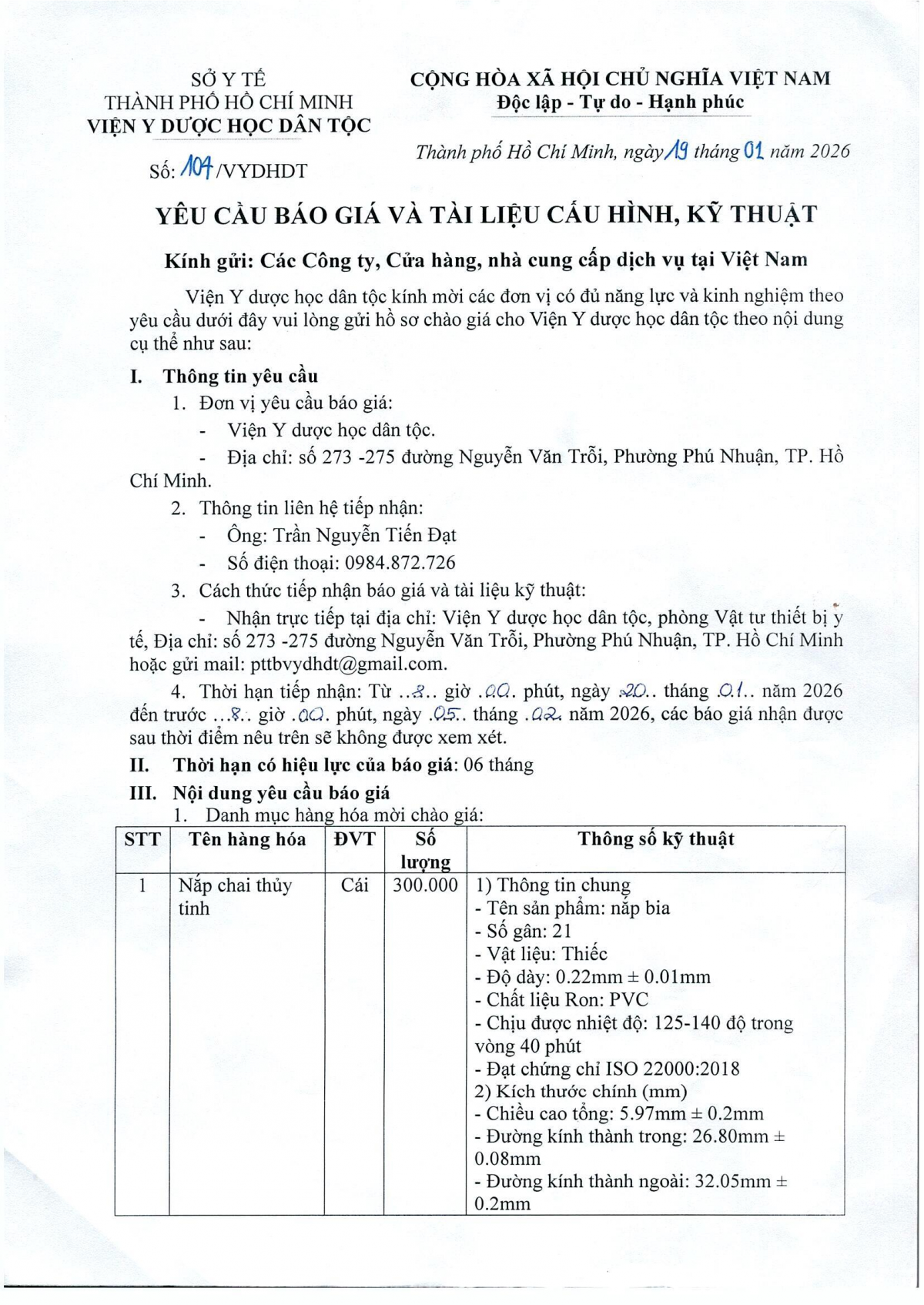 MUA SẮM - ĐẤU THẦU Thông báo yêu cầu báo giá và tài liệu cấu hình, kỹ thuật Công văn 104 về yêu cầu báo giá và tài liệu cấu hình, kỹ thuật 19/01/2026 11 Share on Facebook Tweet on Twitter tweet
