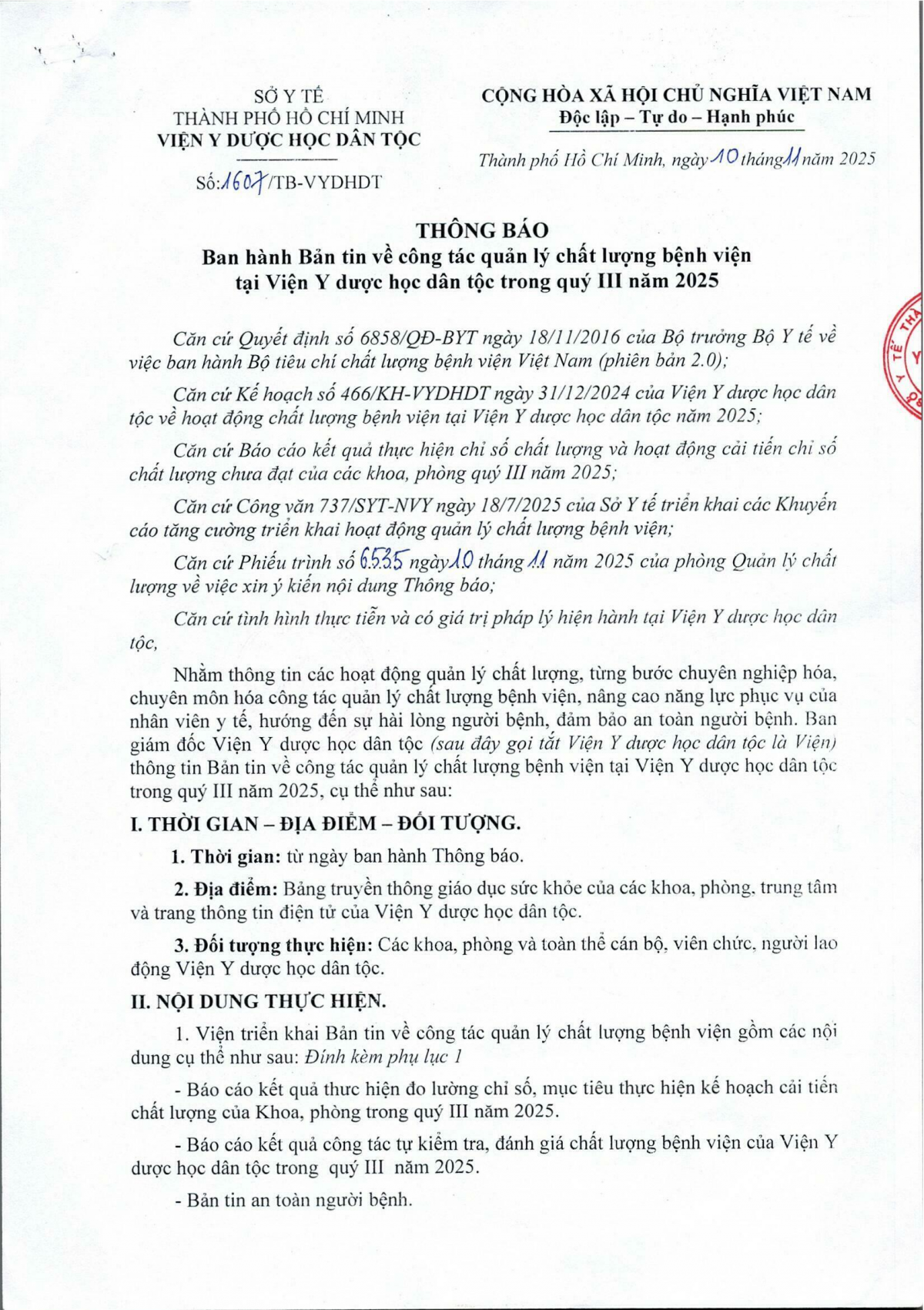 Bản tin về công tác quản lý chất lượng bệnh viện trong quý III năm 2025