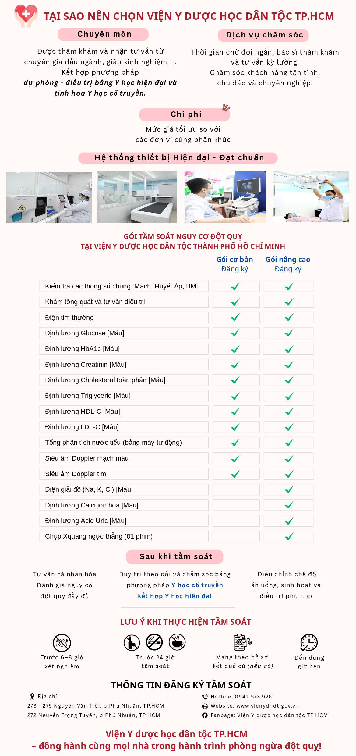 Tại Viện Y Dược học Dân tộc TP.HCM, gói Tầm soát nguy cơ đột quỵ được xây dựng bài bản với: