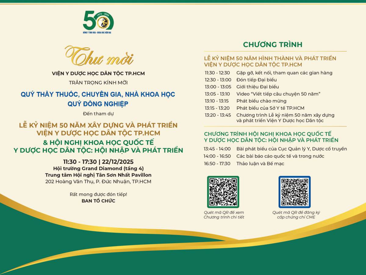 Viện Y Dược học Dân tộc TP.HCM trân trọng chào đón sự tham dự của Quý Đại biểu, Chuyên gia, Nhà khoa học, Quý đồng nghiệp và các đối tác trong và ngoài nước.