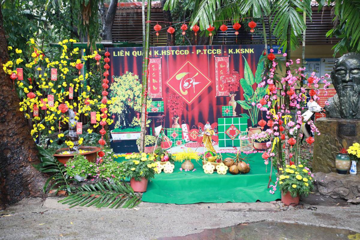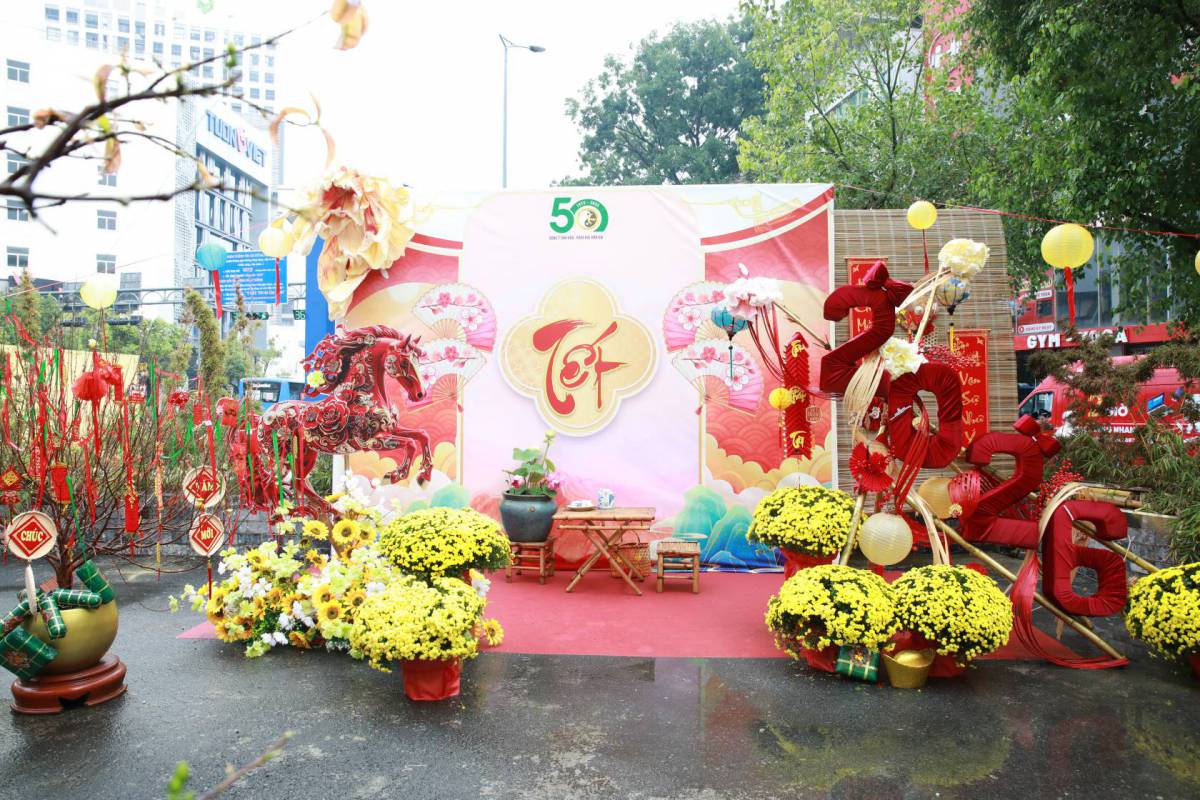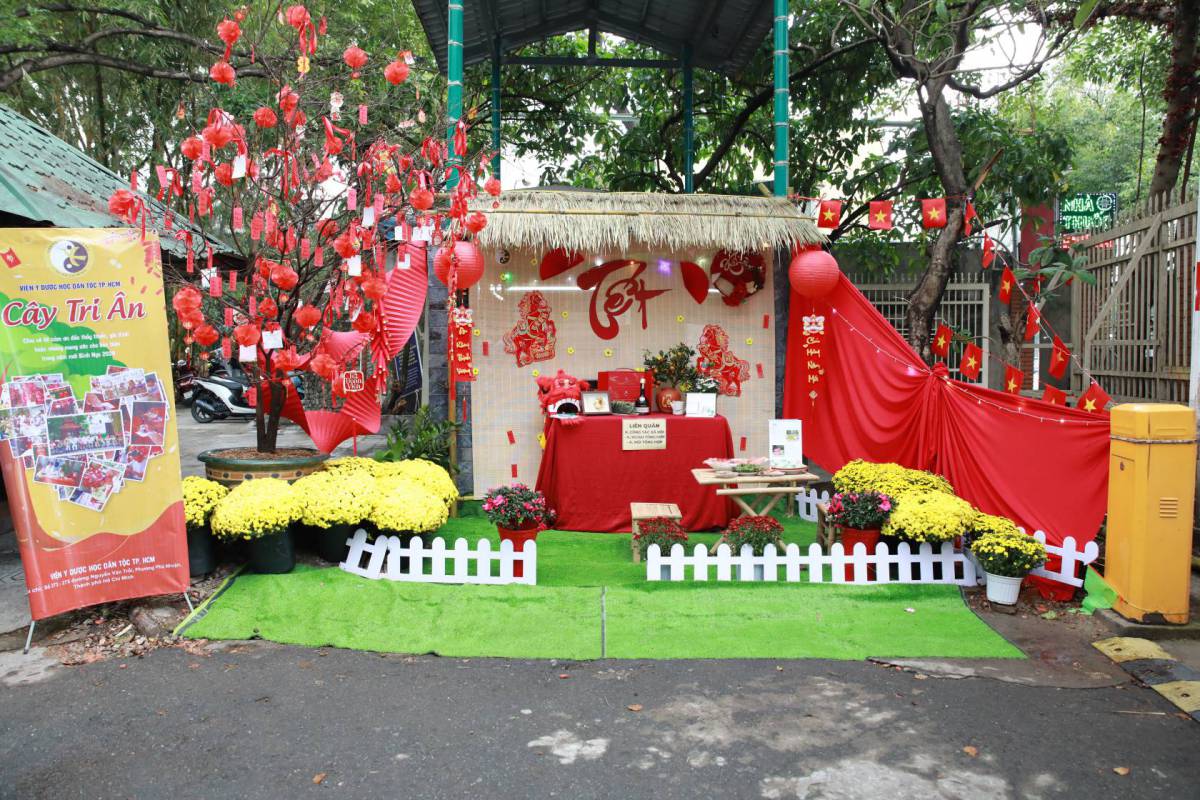 Dưới bàn tay khéo léo của các nhân viên y tế, những tiểu cảnh không chỉ tái hiện nét đẹp Tết cổ truyền với mai vàng, đào thắm, bánh chưng xanh mà còn lồng ghép tinh tế bản sắc y học dân tộc. Hình ảnh dược liệu, cây thuốc Nam và y đức người thầy thuốc được thể hiện qua các thông điệp: An lành – Chữa lành – Hy vọng – Khởi đầu mới.