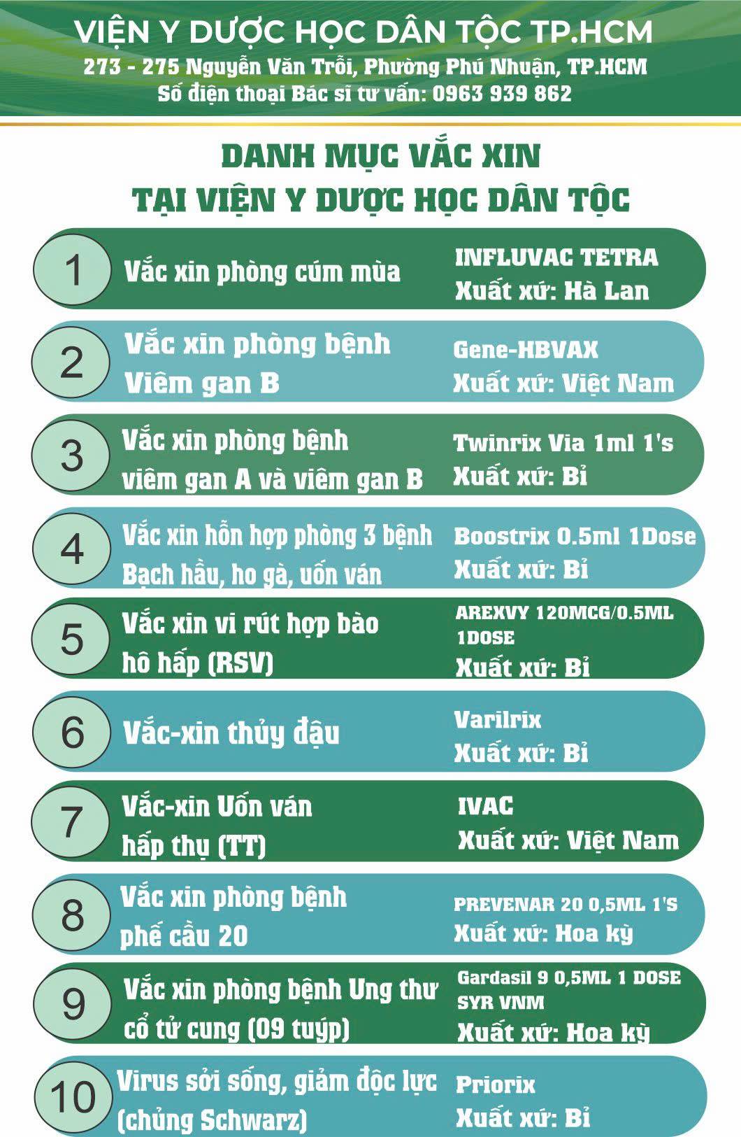 DỊCH VỤ TIÊM VẮC-XIN TẠI VIỆN Y DƯỢC HỌC DÂN TỘC