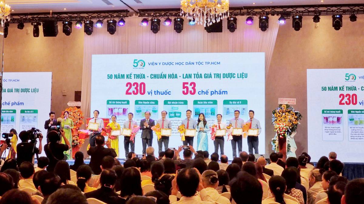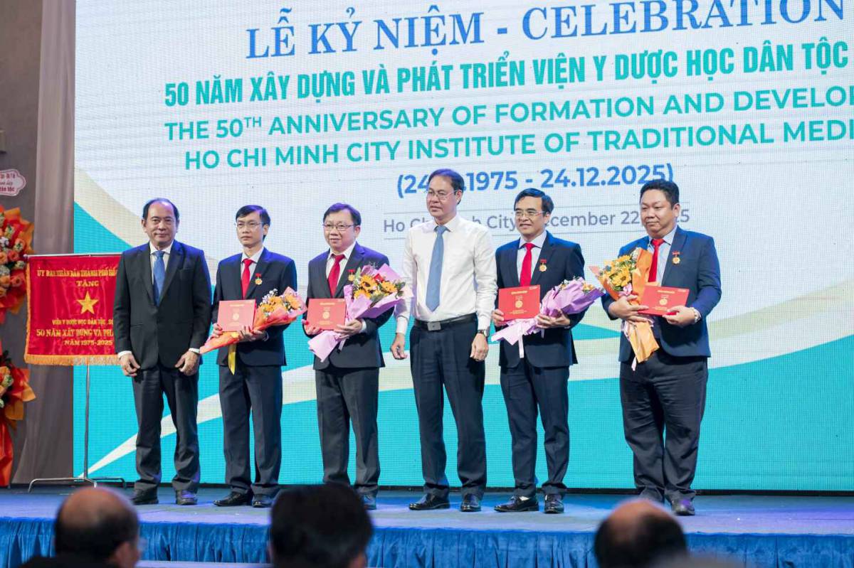 Trong dịp này, tập thể Viện Y Dược học Dân tộc đã vinh dự được Ủy ban Nhân dân TP.HCM trao tặng Cờ truyền thống, ghi nhận thành tích trong xây dựng và phát triển Viện trong 50 năm qua.